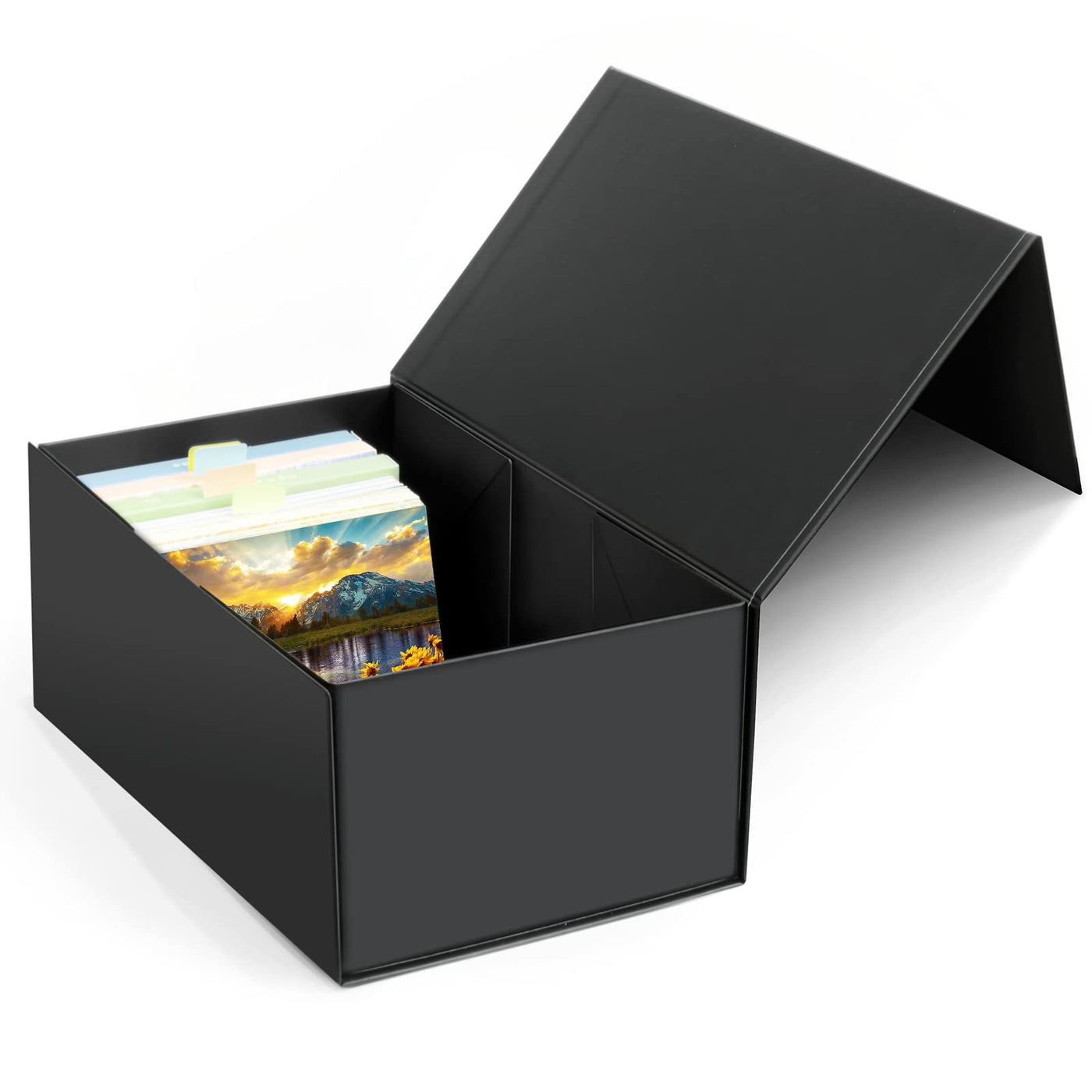 Package: 1 Pack Of 4X6 Index Card Storage Box Material: Thick Cardboard With A Laminate Capacity: 1200 Count Cards Or Photos, 400 Count Cards Within Toploaders Dimension: Outside Dimension Is 12 X 6.8 X 4.8 Inches. Inner Dimension Is 11.5X 6.5 X 4.5 Inches Length Of The Box Is 12 Inches, Which Is Longer Than Most Index Card Boxes In Market, Indicating A Larger Capacity Of Our Index Card Box. Inner Size Is 4.5X6.5 Inches, Slightly Larger Than 4X6 Inches, Suitable For Both Large And Small Index Cards. You Can Also Use Tab Dividers Or Labels Within The Box. It Is Also Prefect Fit For 4X6 Toploaders. Great Storage Box For All 4X6 Size Cards, Papers Or Any Other Small Objects. Can Be Used As 4X6 Photo Storage Box, Greeting Card Storage Box, Recipe Card Box Etc. Professional Yet Affordable 4X6 Card Storage Box For Post Card Lovers, Recipe Card Collectors, Teachers, Handicraft Enthusiast And So On. Not Just For 4X6 Pics And Cards, But Also A Great Organizer Box For Office Supplies, Art Craft Supplies...