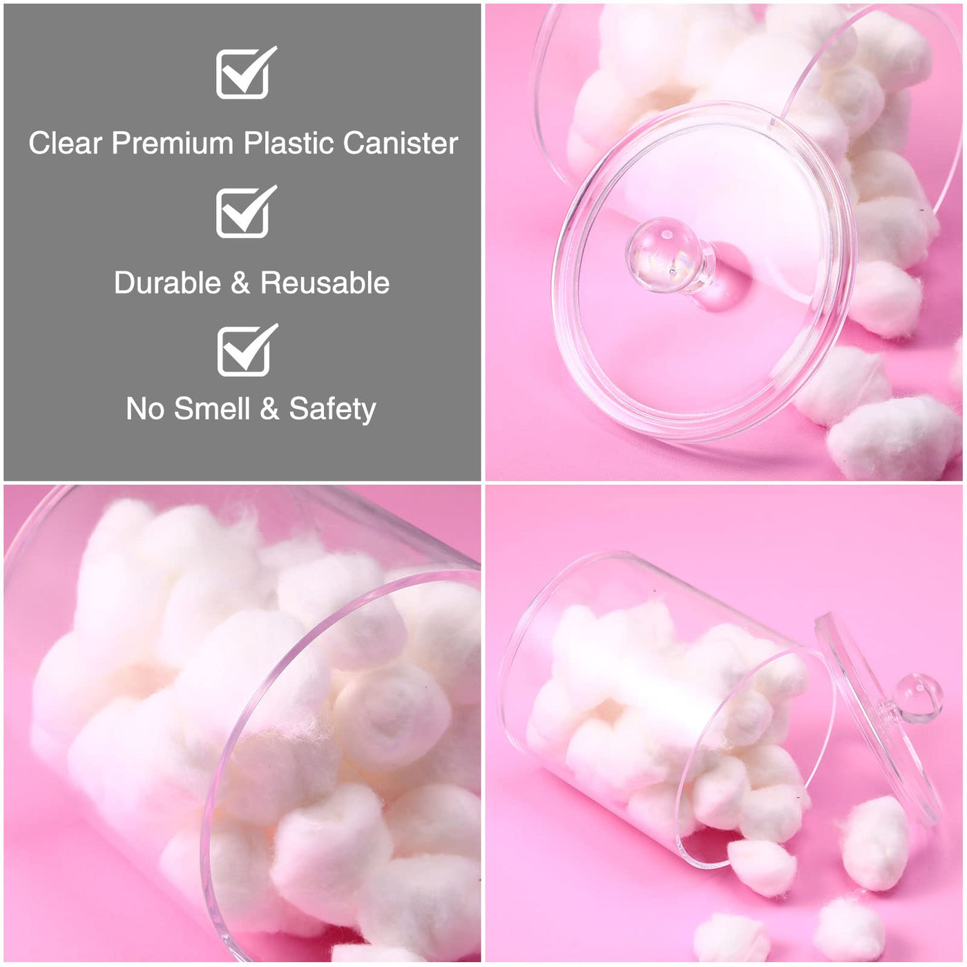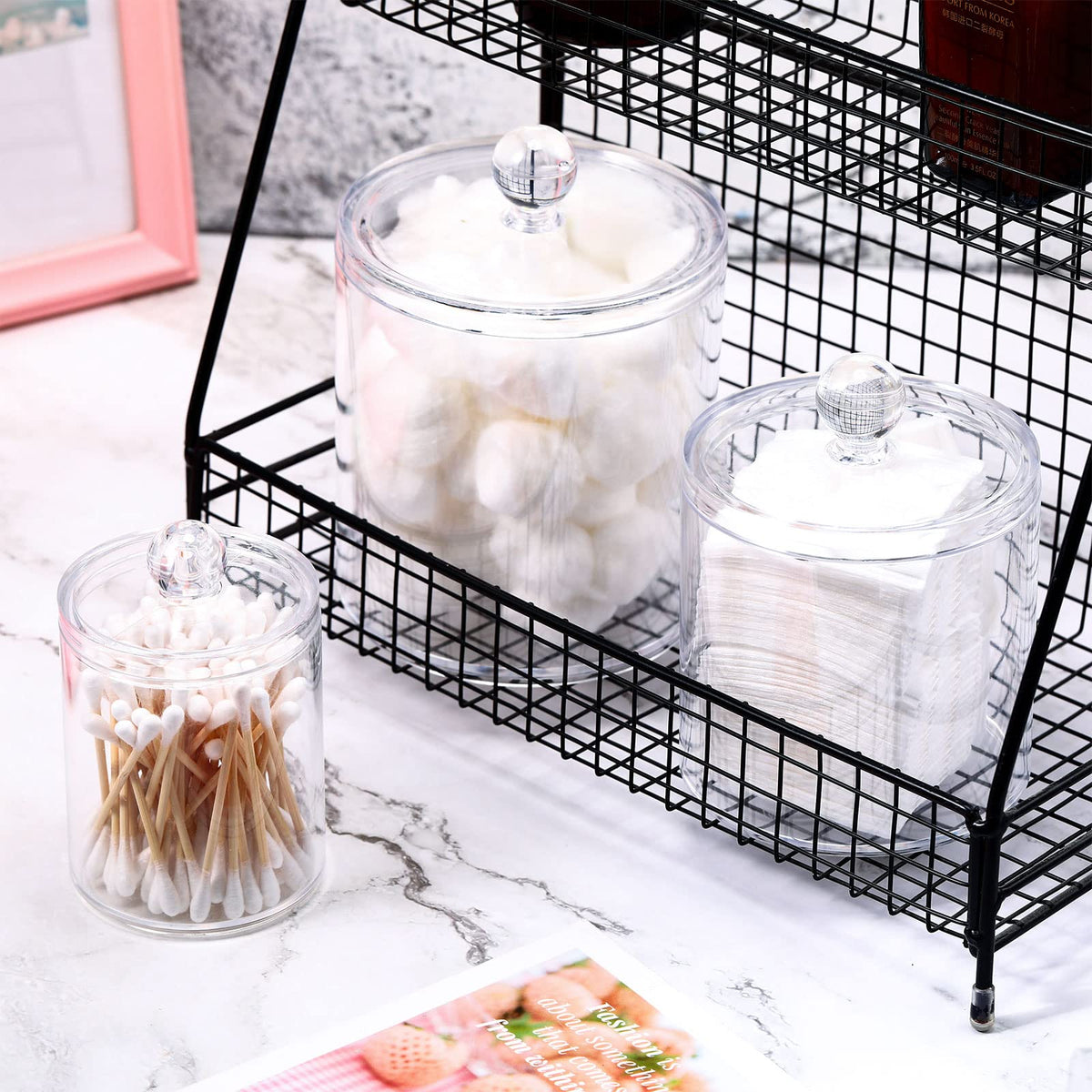 Q: How can I organize my bathroom items with these jars?A: These jars are perfect for storing small bathroom items such as cotton balls, cotton swabs, dental floss, hair clips, and makeup remover. Their space-saving design helps keep your bathroom tidy and organized.