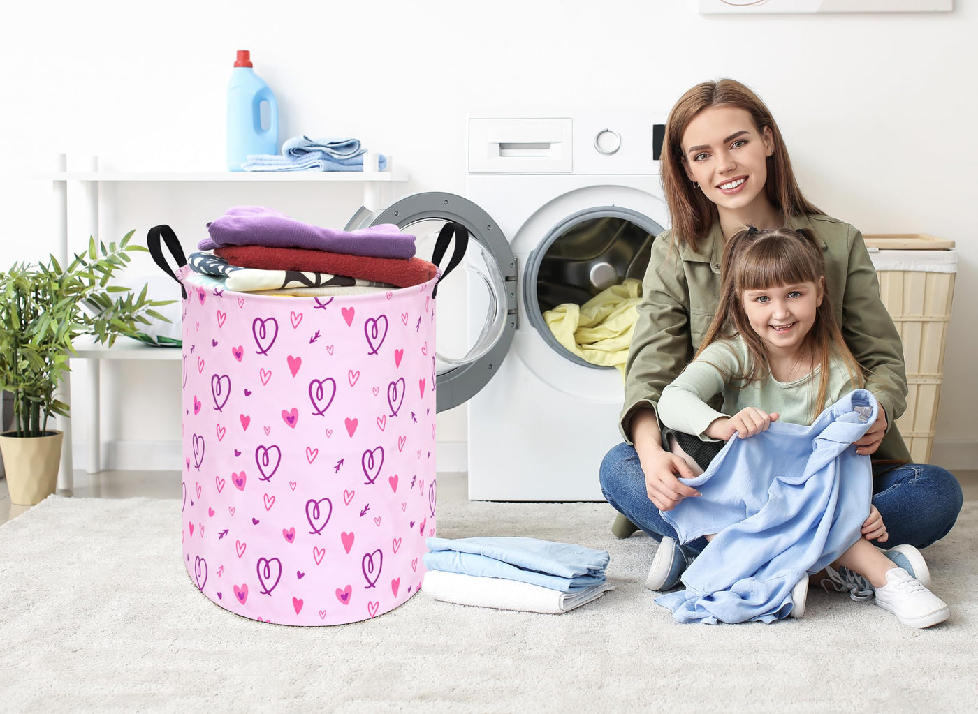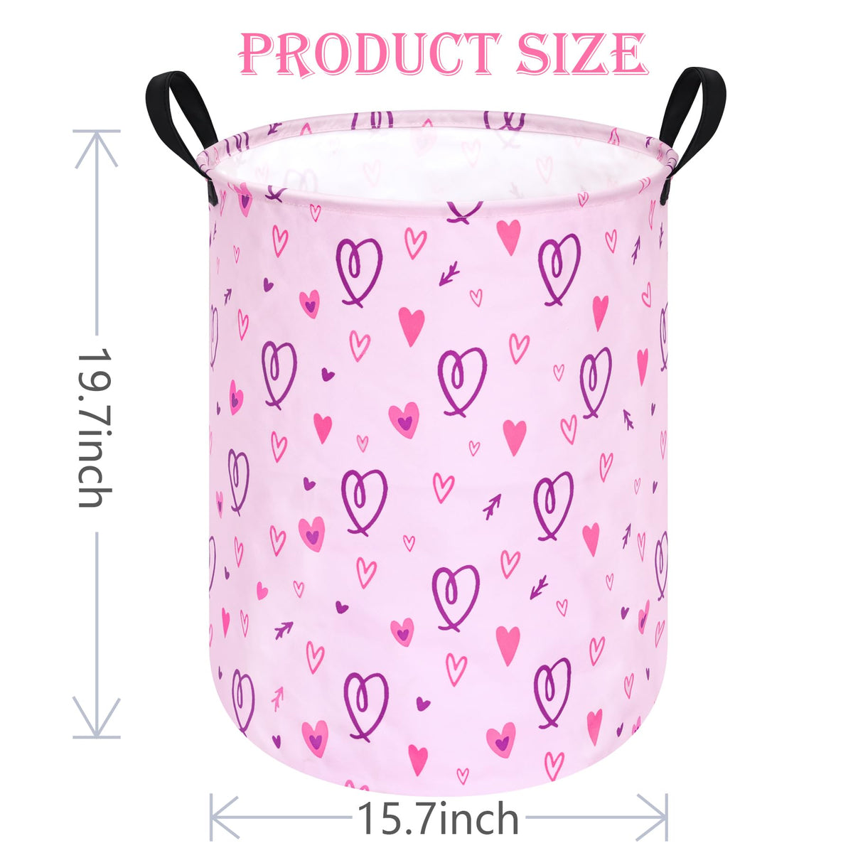 Acmuuni 19.7' Round Pink Gift Basket Laundry Hamper Girls Laundry Basket With Handles,Storage Basket For Kids Room Bedroom Deco