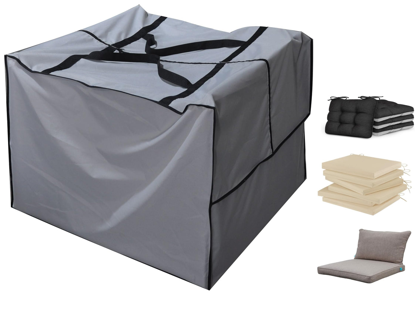 Perfect For Storing Chair, Bench, And Chaise Cushions. Up To 32' Long X 32' Wide X 24' High.Grey Polyethylene Material Protects Against Sun, Rain, Snow And Dirt Year Round. Scratch And Water Resistant. Waterproof Backing Keeps Your Cushions Safe.Double-Stitched Seams Add Strength.Large Zippered Opening Makes Easy Loading And Unloading, Long Rugged Handles Makes Convenient Moving.Easy To Fold And Store With A Box Which Is Quite Space-Saving. Can Be Wiped Up With Just Water Or Mild Detergent.