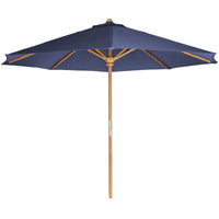 All Things Cedar TU90-B Teak Market Table Umbrella Outdoor | 2-Piece Pole & 10-ft Canvas Canopy with Wind Vent | Indonesian Teak Java Finish | Solid Brass Hardware | Easy Storage | Blue