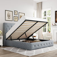 Allewie Full Size Lift Up Storage Bed, Button Tufted Headboard With Wingback, Hydraulic Support, No Box Spring Needed, Grey Blue