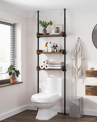 Allzone Adjustable Over The Toilet Storage Cabinet, Tension Mount Bathroom Organizers And Storage Over Toilet With 3 Tier Shelves, Over Toilet Bathroom Organizer Fit 92-116 Inch Tall, Rustic Brown