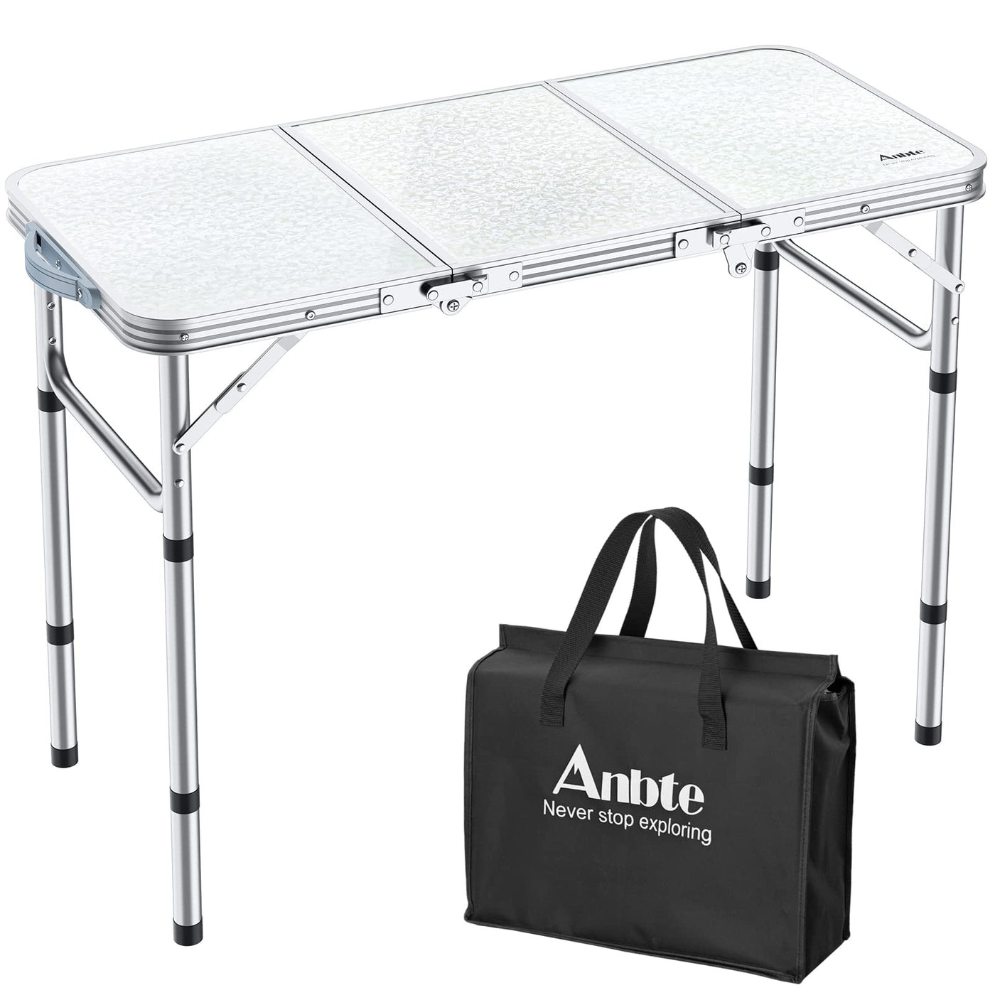 Anbte Folding Camping Table With Storage Net, 3Ft Camping Table Aluminum Folding Table With 3 Adjustable Height Max 27.1 Inch Picnic Table Portable Table For Outdoor Backyard Bbq, Silver