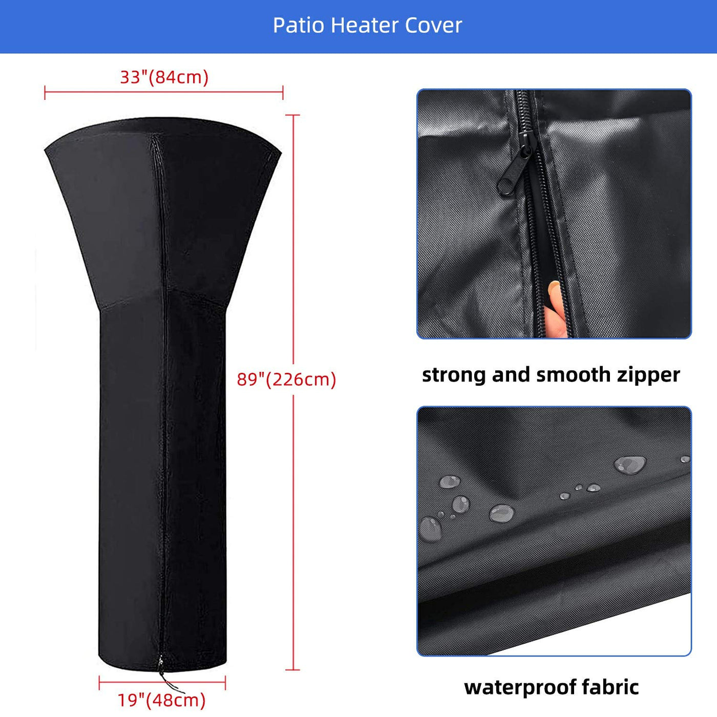 Protect Your Outdoor Items From Bad Weather With Our Patio Heater Covers We Used Upgraded 420D Durable Oxford Fabric For This Patio Heater Cover, Thicker Fabric With Waterproof Coating On The Back, Which Has Great Tear Resistance, Weather Resistance, And Can Prevent The Rain, Sun, Frost, Dust, Bird Droppings And Other Outdoor Factors Infringement You Can Be Confident That Your Patiofurniture Is Secure Through The Seasons Item Specifics: Color: Black Item Type: Patio Heater Cover Material: 420D Wateproof Polyester Size: H89Xd33Xb19In226*85*48Cm Weight: 650G Features: -Made Of&Nbsp420D Premium Material, Wear-Resistant, And Available For Long Lifespan -Durable, Waterproof, Dustproof And Sun-Resistant -Easy To&Nbspinstall,&Nbspfold And Carry Package Included: 1X Patio Heater Cover 1X Storage Bag