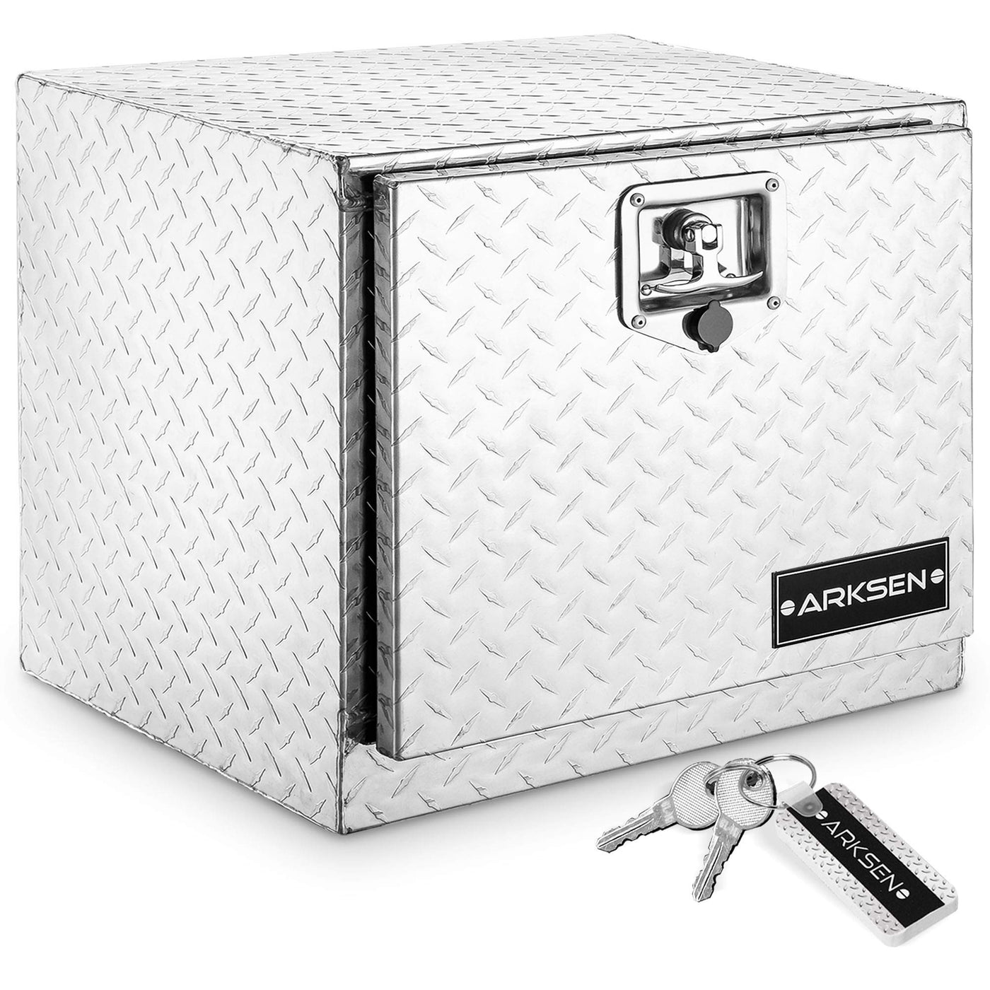 Arksen 18 Inch Heavy Duty Aluminum Diamond Plate Tool Underbody Box, Waterproof Square Truck Storage Organizer Chest For Pick Up