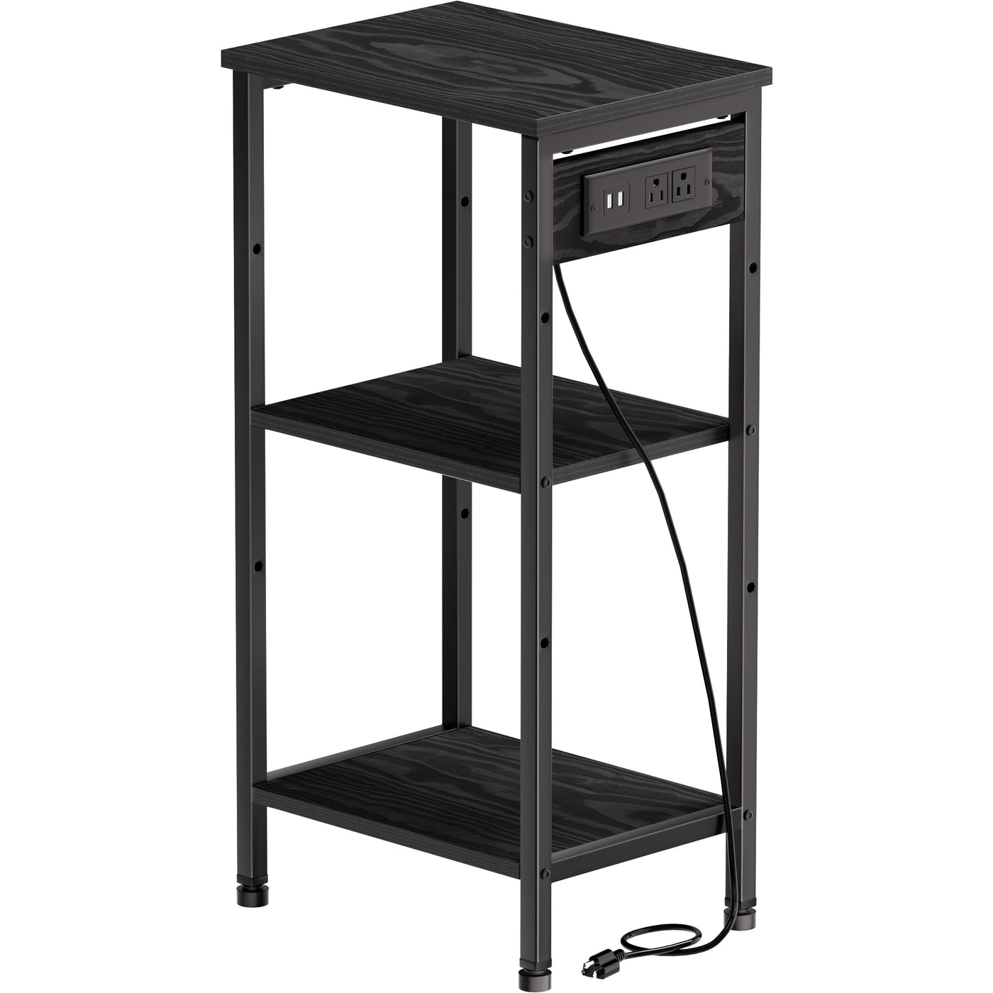 Asgolion Tall Nightstand With Charging Station, 3 Tier Narrow Tall End Table With Storage, Slim Side Table With Usb Ports And Ou
