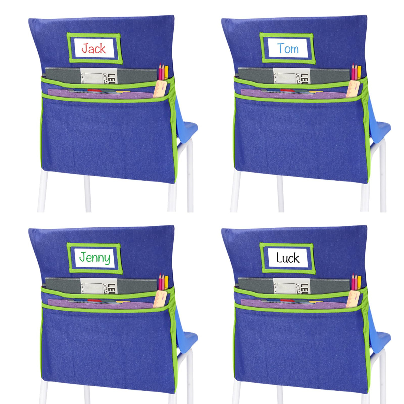 Auchq 16Pcs Chairback Buddy Pockets Chart With 2 Heavy Duty Storage Pocket,School Supplies Chair Back,Standard Denim Storage Org