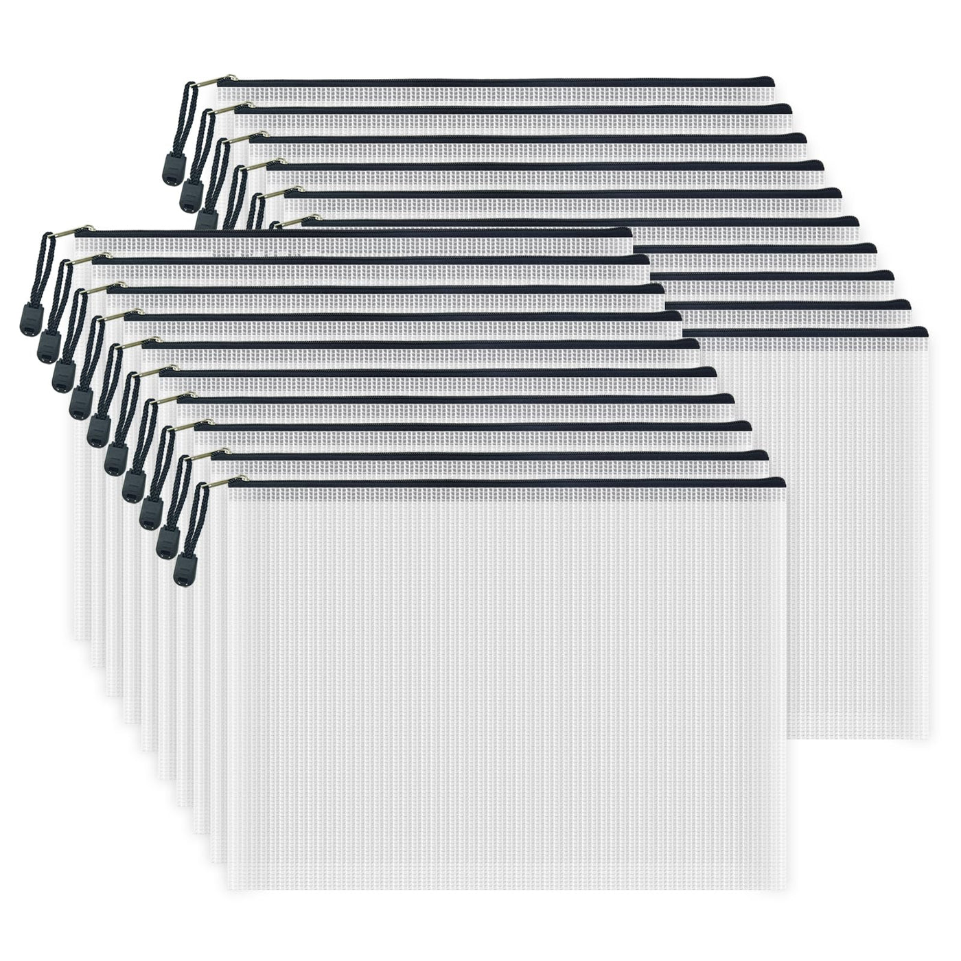 Austark 20 Pcs Zipper File Bags, Plastic Mesh Pouch, Board Game Storage Bag, Waterproof Bags For Office School (A4 Size 13.4'X9