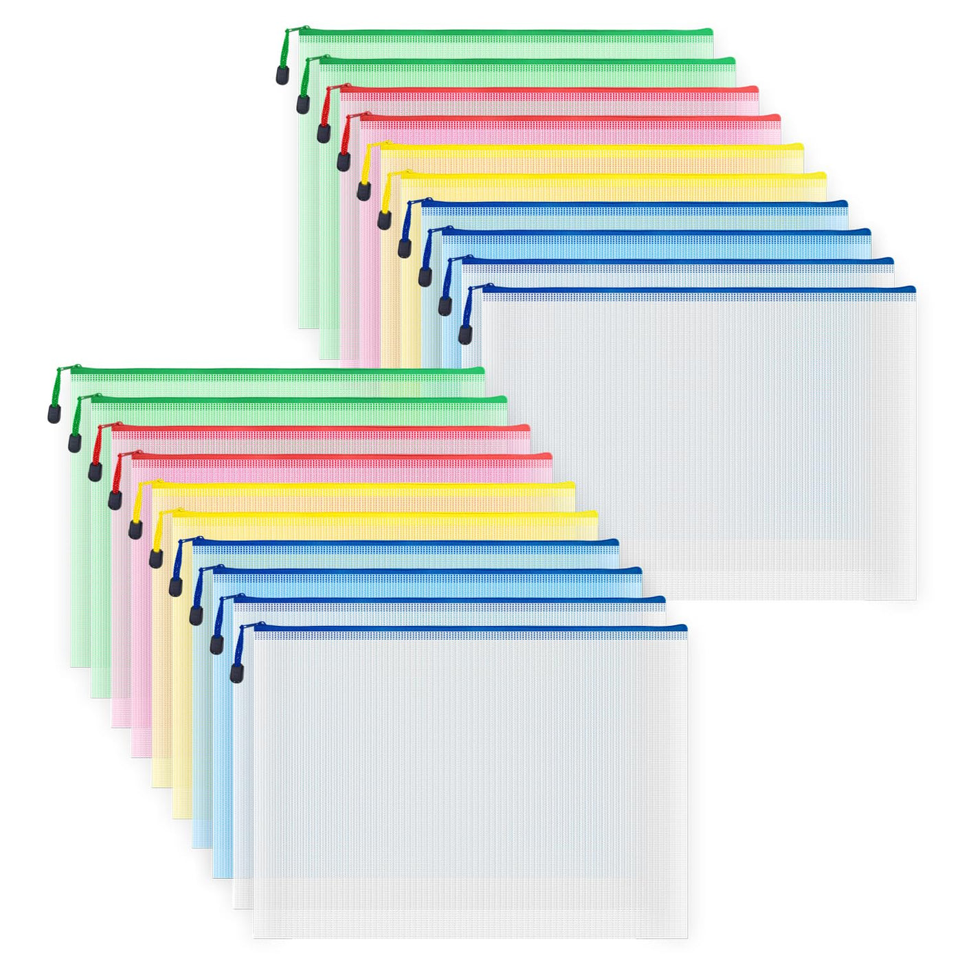 Austark 20 Pcs Zipper File Bags, Plastic Mesh Pouch, Board Game Storage, Waterproof For Office School (A3 Size 16.9'X12', Mult