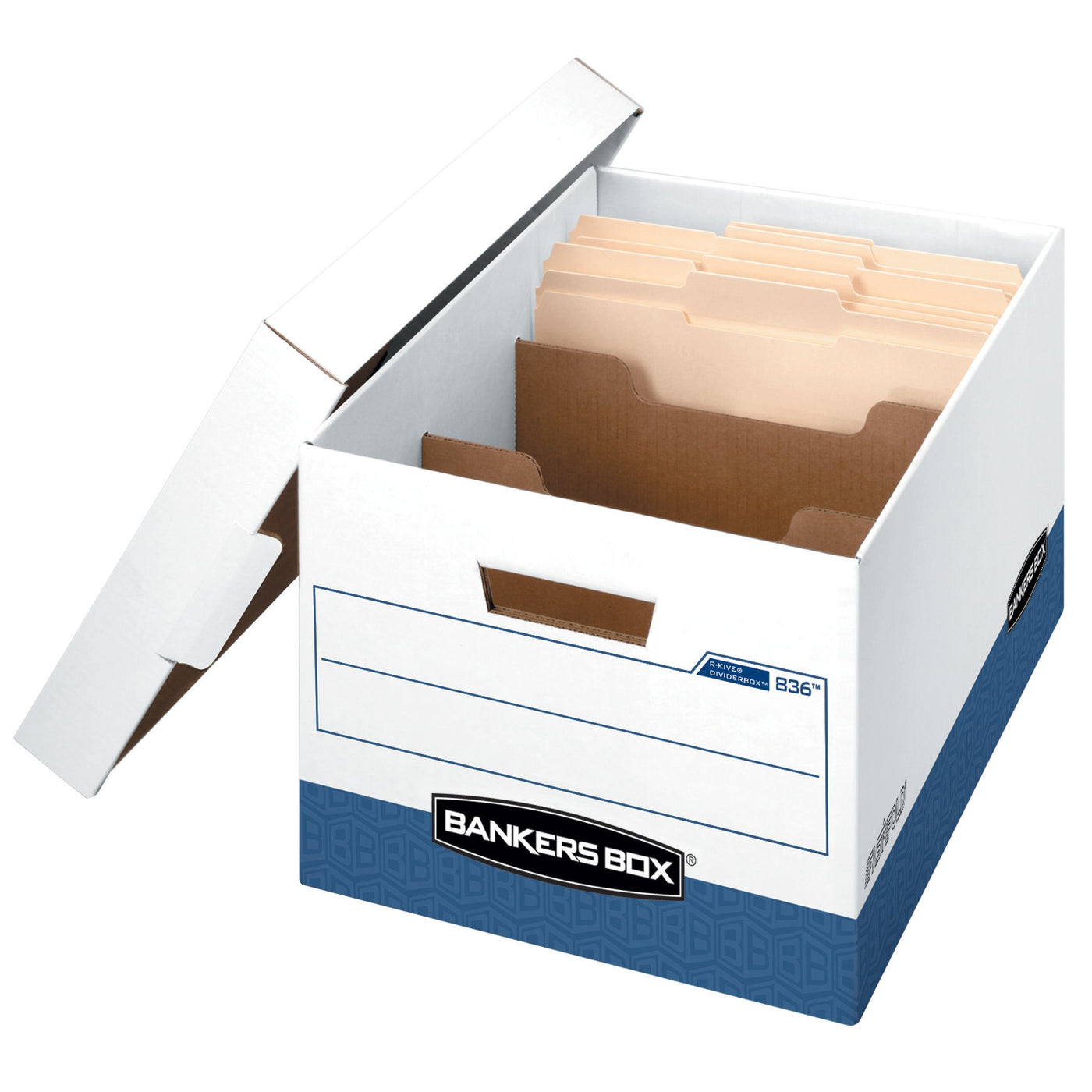 Product Descriptiondividers Prevent Files From Falling Over. Fastfold Quick And Easy Assembly. Three, 5' Dividers Keep Files Upright Even When Box Is Partially Full. Triple End, Double Side, Double Bottom Construction Stacks Up Stronger. Reinforced, Tear-Resistant Hand Holes Make Box Comfortable To Carry. Deep, Locking Lift-Off Lid Stays In Place For Secure File Storage. Smooth Rolled Edges Add Strength And Prevent Paper Cuts.From The Manufacturerbankers Box