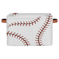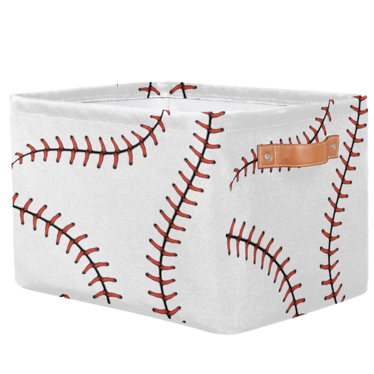 Baseball Storage Bin Basket, White Softball Large Toys Storage Cube Box With Handles, Collapsible Laundry Basket Rectangular Wat