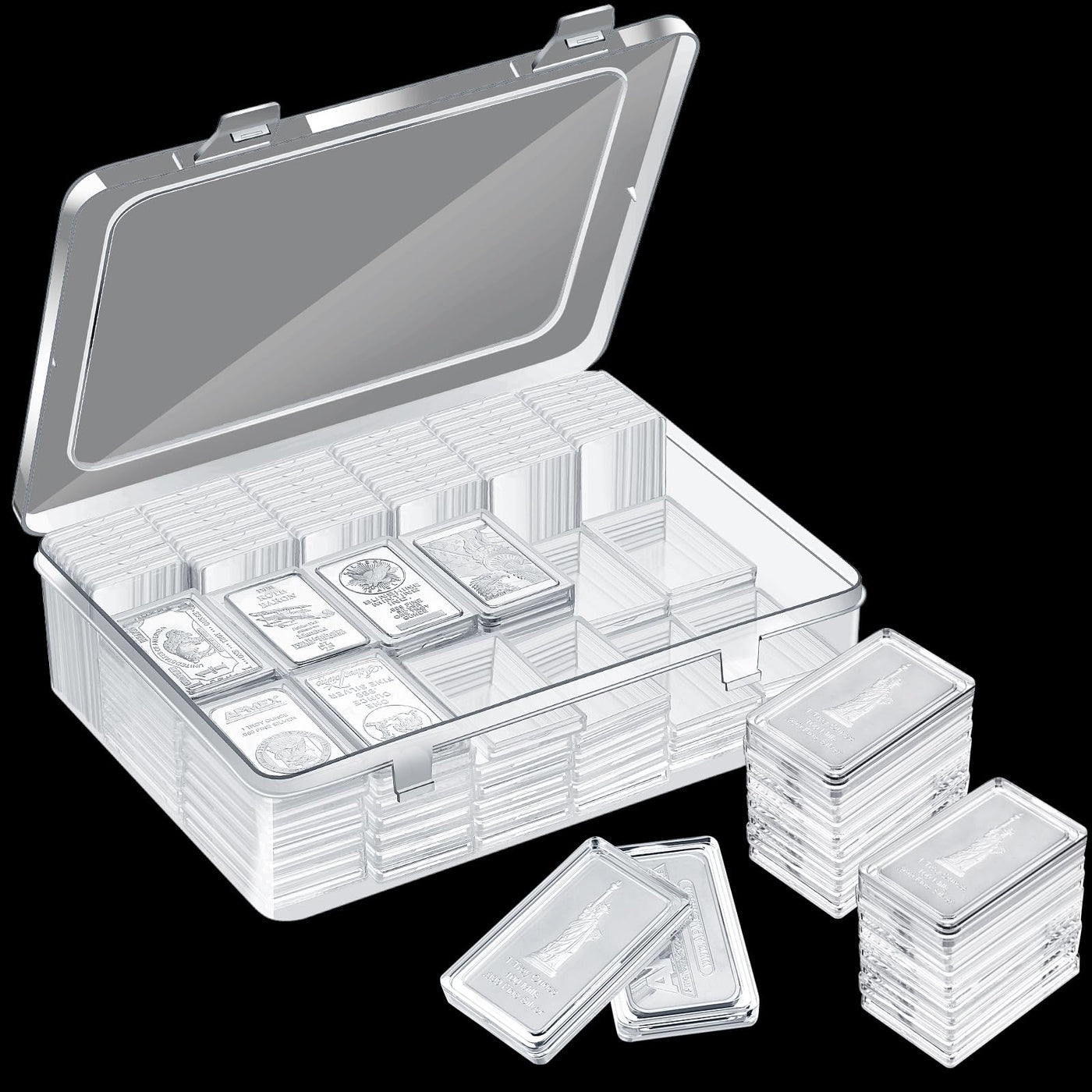 Features: Warm To Share: These Silver Bar Holders 1 Oz Are Ideal For Your Friends, Colleagues, Relatives, Neighbors, Family And Other Coin Collectors To Enhance Your Relationship And Express Your Care And Love, And They Will Be Delighted To Receive These Gifts. Easy To Store: The 1 Oz Silver Bar Capsule And Storage Box Are Light In Weight And The Right Size, Easy To Carry And Store, Do Not Take Up Space, Saves Your Time And Space. Specifications: Material: Acrylic And Plastic Color: Transparent Size: Storage Box: About 8.9 X 6.7 X 2.4 Inches/ 22.5 X 17 X 6 Cm Silver Bar Storage Case: About 50 X 30 X 3 Mm/ 1.96 X 1.18 X 0.12 Inches Inside, About 55 X 35 X 6.5 Mm/ 2.16 X 1.37 X 0.25 Inches Outside Package Includes: 100 X Silver Bar Cases 1 X Large Storage Box Notes: Manual Measurement, Please Allow Slight Errors On Size. The Color May Exist A Slight Difference Due To Different Screen Displays. Please Confirm If The Size Is What You Need Before Purchasing.