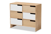 Baxton Studio Eben White and Oak Brown Finished Wood 6-Drawer Storage Cabinet