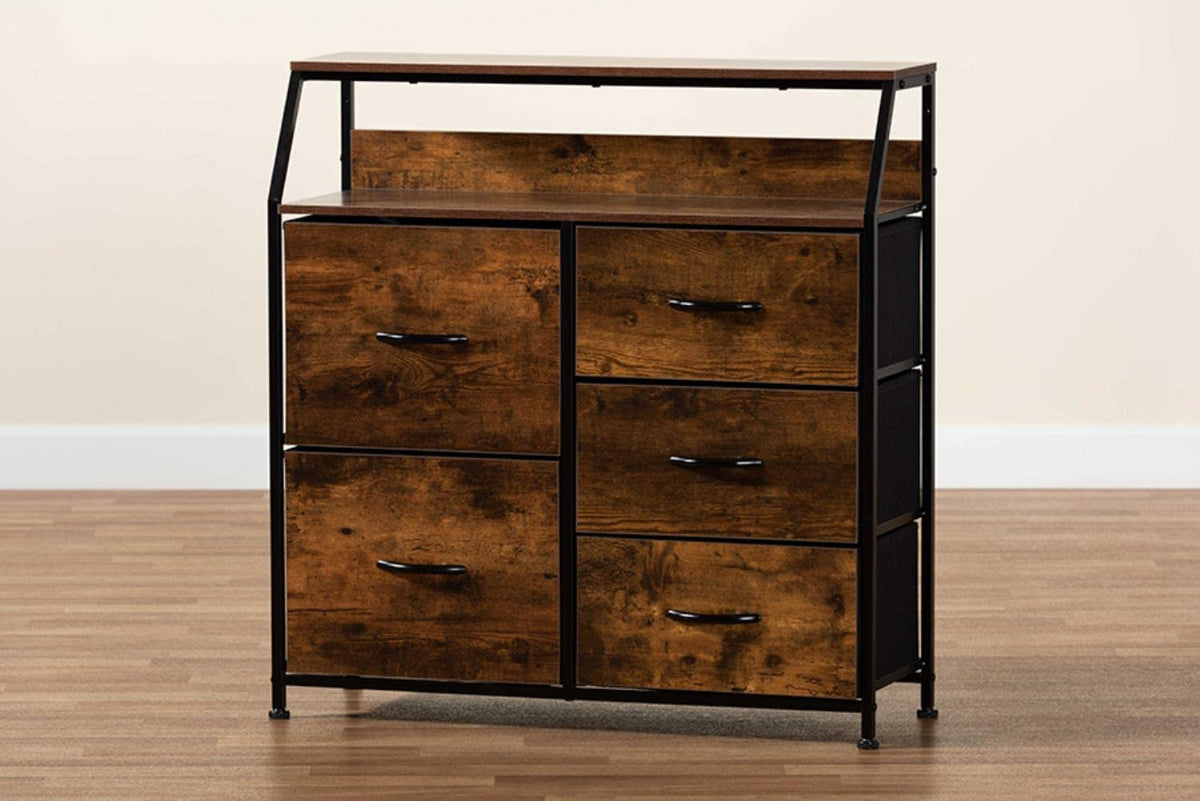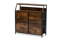 Baxton Studio Jacop Brown Finished and Black Metal 5-Drawer Storage Cabinet