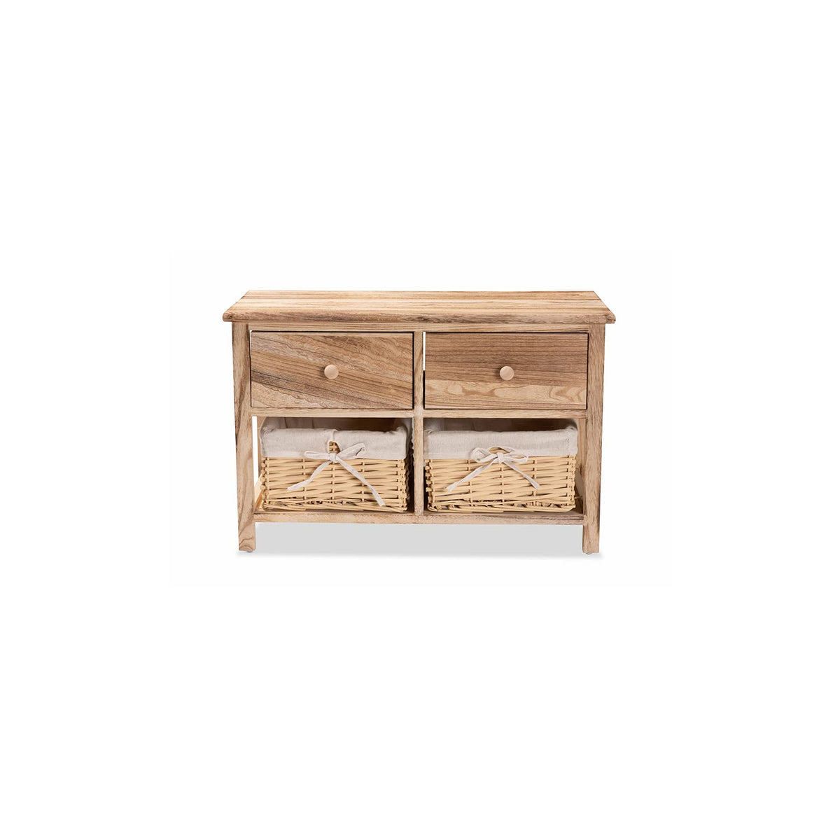 Baxton Studio Kenwood Rustic and Contemporary Oak Brown Finished Wood 2-Drawer Storage Unit with Woven Baskets
