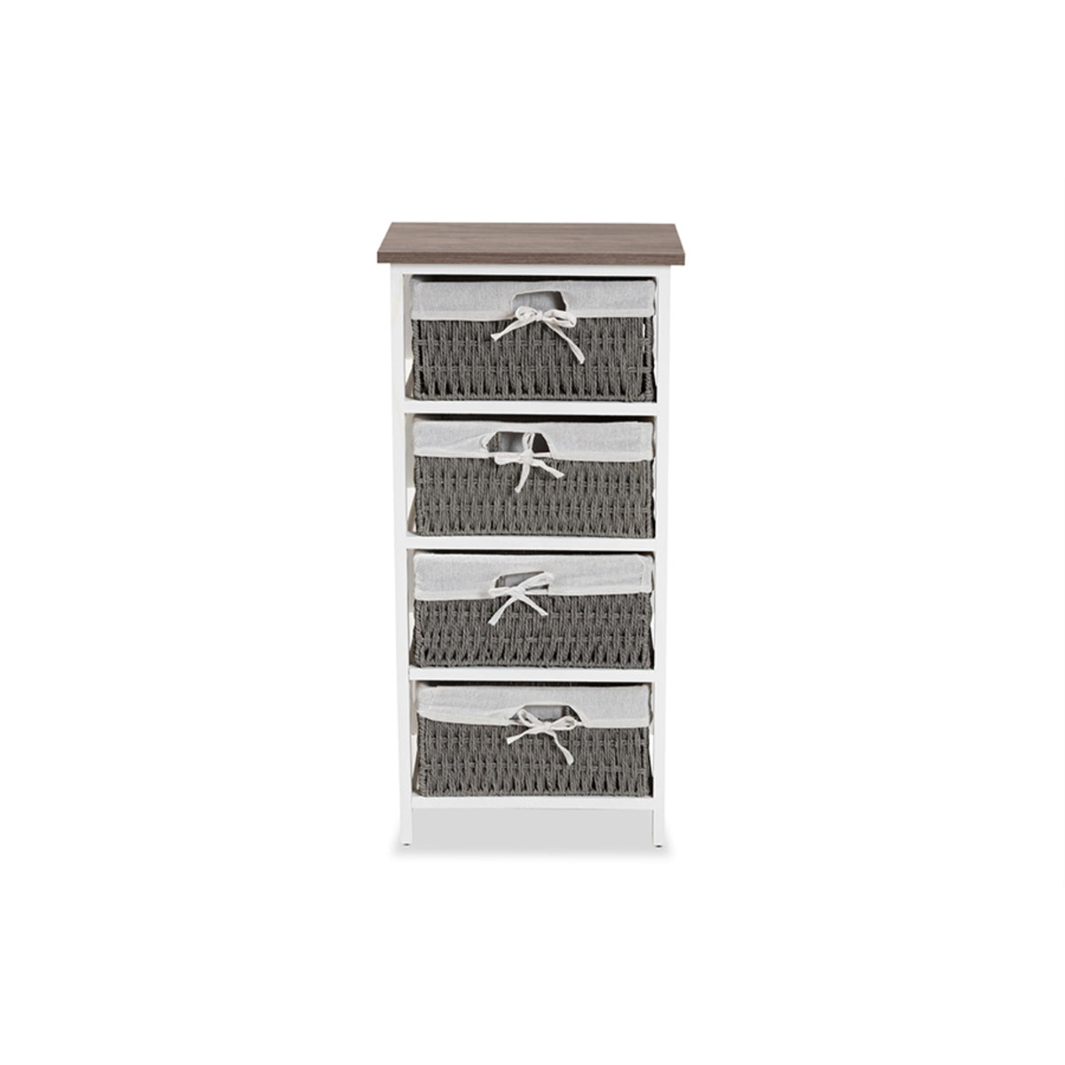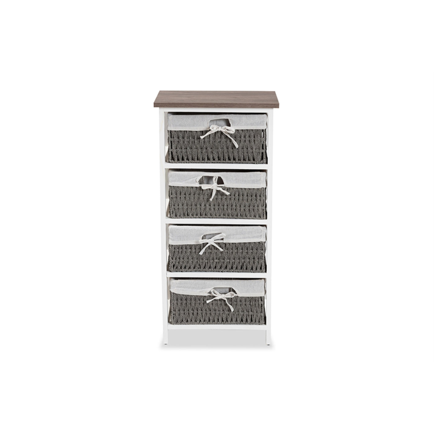 Baxton Studio Terena Modern Transitional Two-Tone Walnut Brown and White Finished Wood 4-Basket Storage Unit