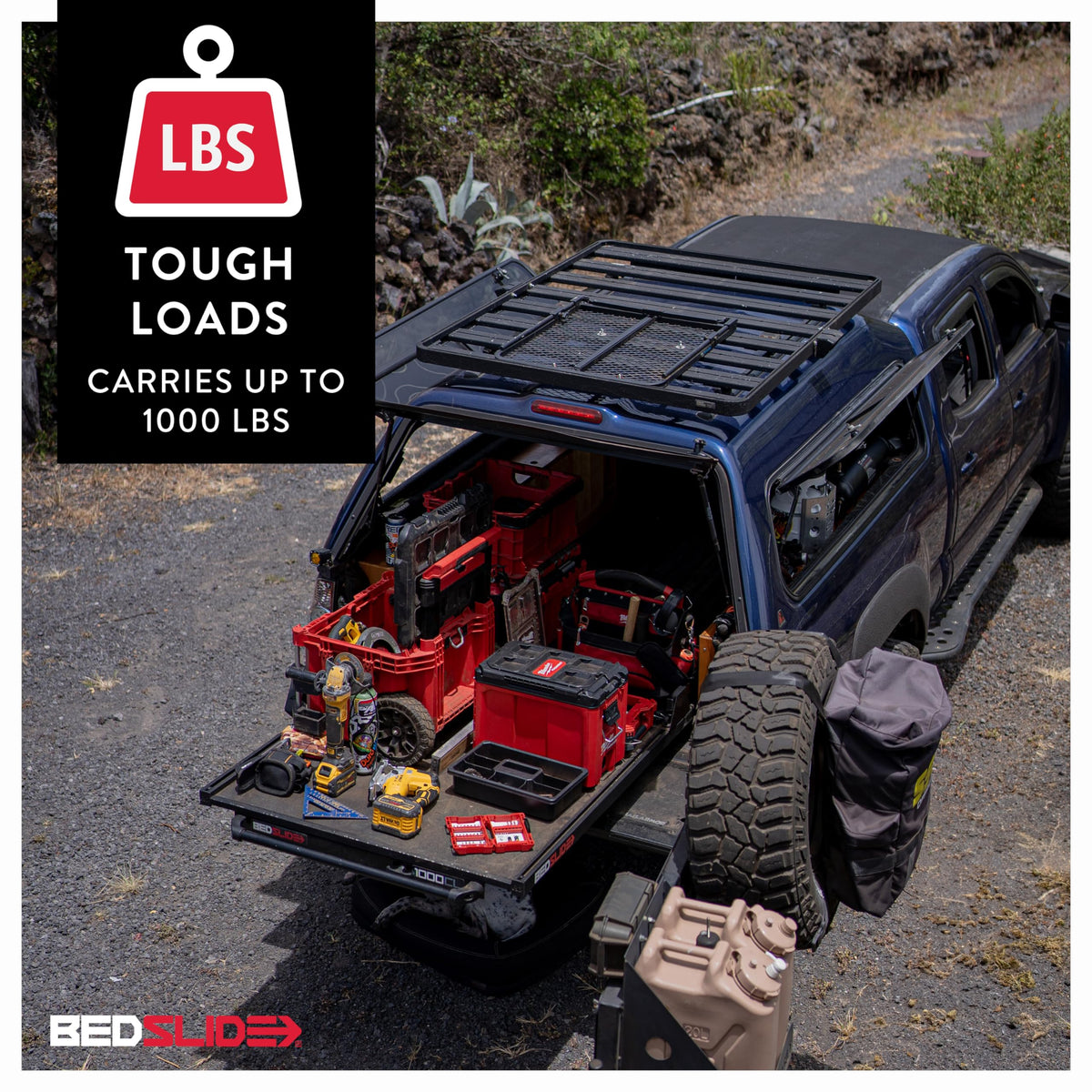 The Bedslide Classic, The Ultimate Solution For Maximizing Your Truck'S Storage Space And Organization. This Innovative Trunk Organizer For Suvs And Trucks Is Designed To Make Your Road Trips, Camping Adventures, And Outdoor Activities More Convenient And Enjoyable. This Allows You To Access Your Truck Bed Effortlessly, Sliding Out Smoothly From Under Your Tonneau Cover Or Truck Cap. Built To Handle Heavy Loads, The Bedslide Classic Boasts A Remarkable 1000Lbs Weight Capacity, Evenly Distributed For Optimal Balance.