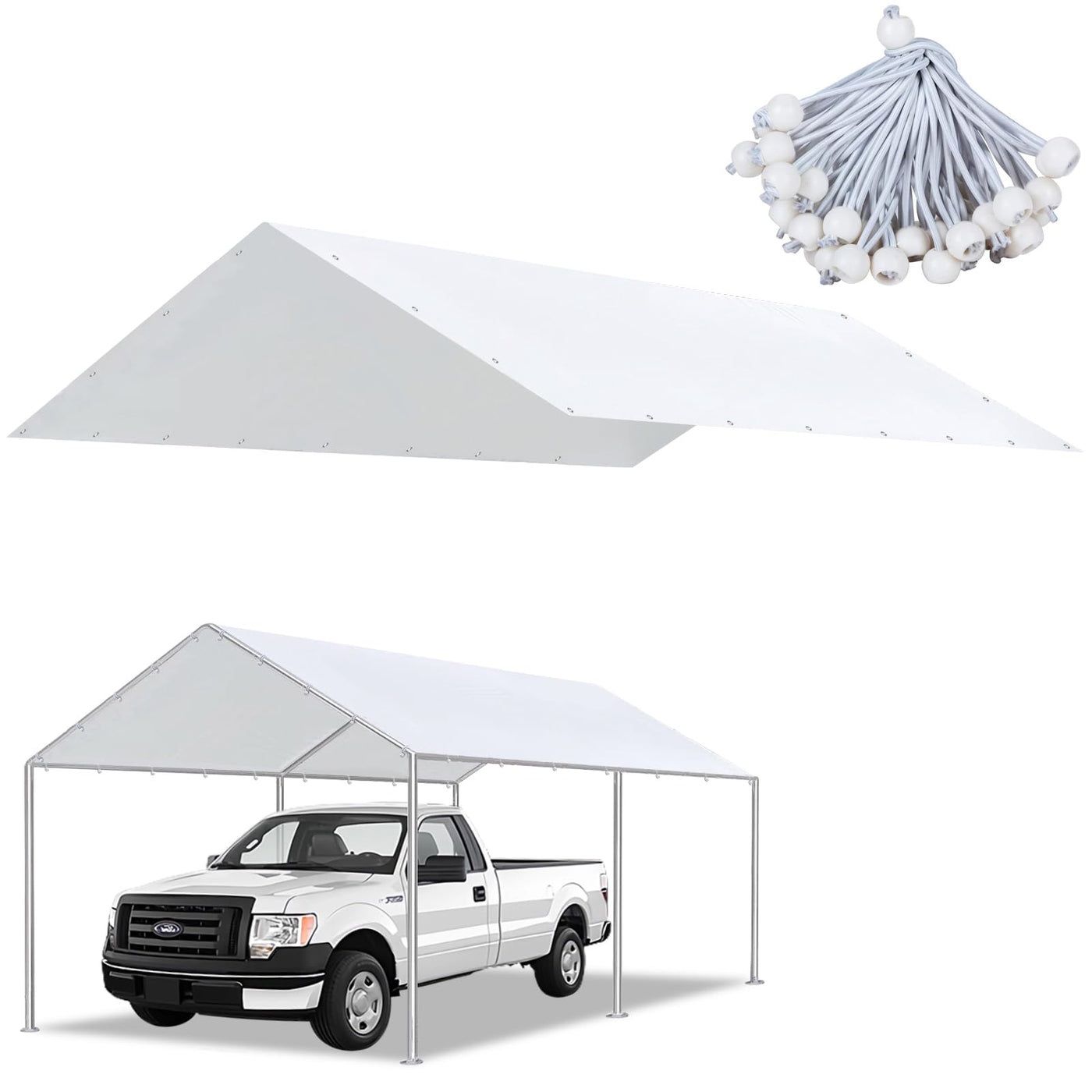 Bluyard 10 X 20 Ft Carport Replacement Canopy Cover Garage Top Tent Shelter With 40 Ball Bungee Cords Heavy Duty Waterproof Uv &