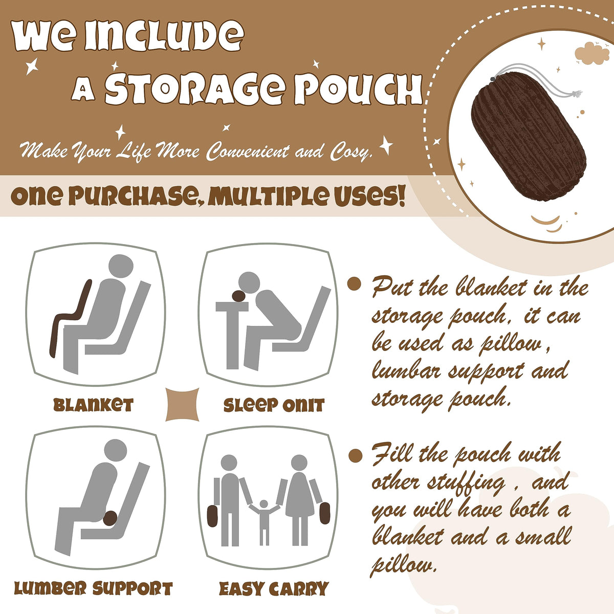 Bnuitland Brown Flannel Throw (50X70 Inches) With Storage Pouch,300Gsm Super Soft Fleece Stripe Pattern Sofa Blanket For Adults