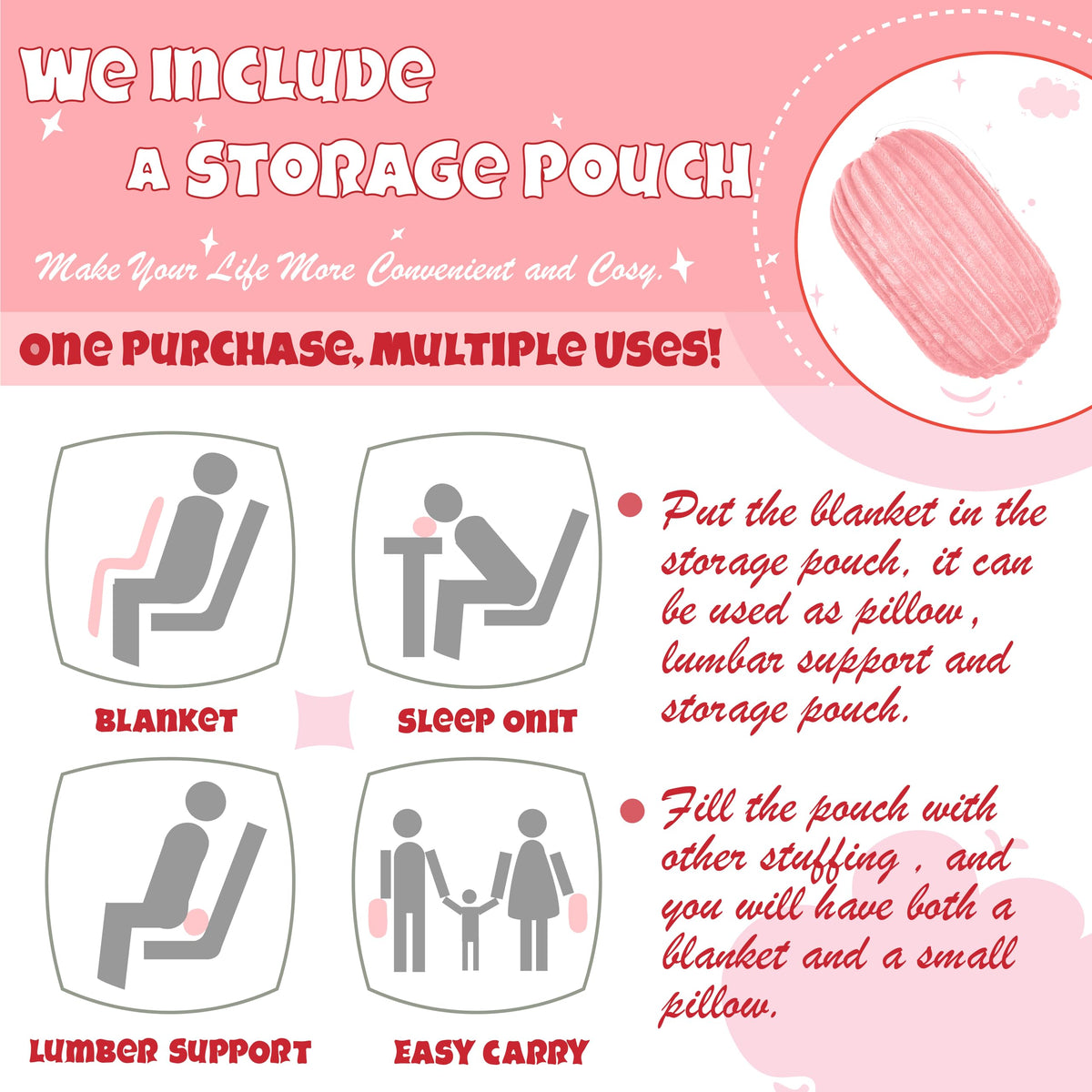 Bnuitland Light Pink Flannel Throw With Storage Pouch,300Gsm Super Soft Fleece Stripe Pattern Sofa Blanket For Adults And Kids,