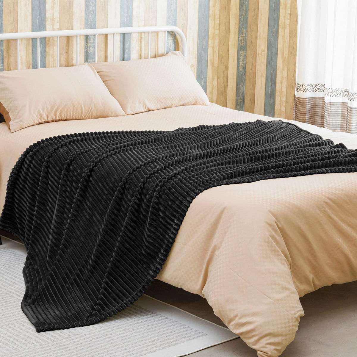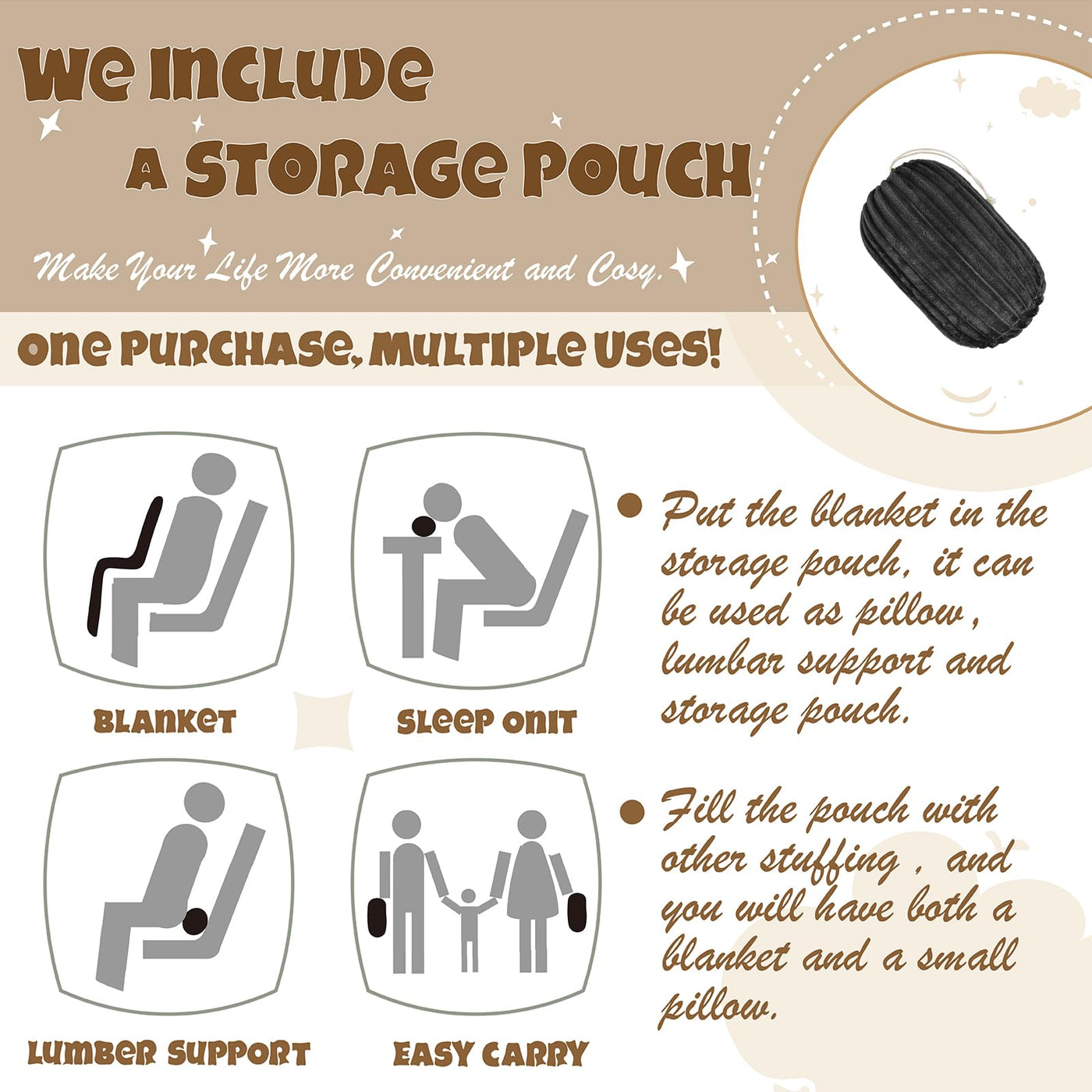 Bnuitland Orange Flannel Throw Blanket Twin Size (60X80 Inches) With Storage Pouch,300Gsm Super Soft Fleece Stripe Pattern Sofa