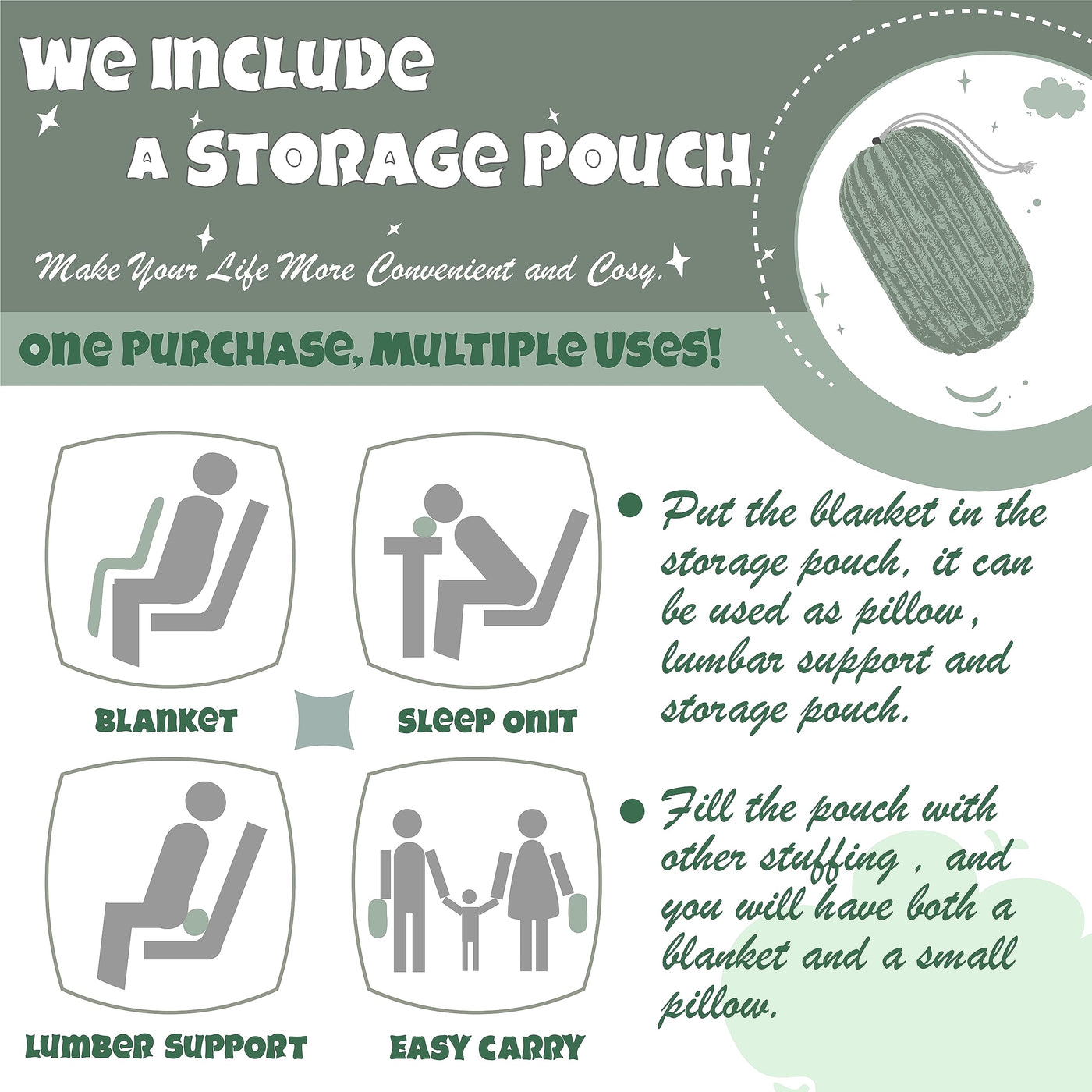 Bnuitland Sage Green Flannel Throw Blanket (60X80 Inches) With Storage Pouch,300Gsm Super Soft Fleece Stripe Pattern Sofa Blanke