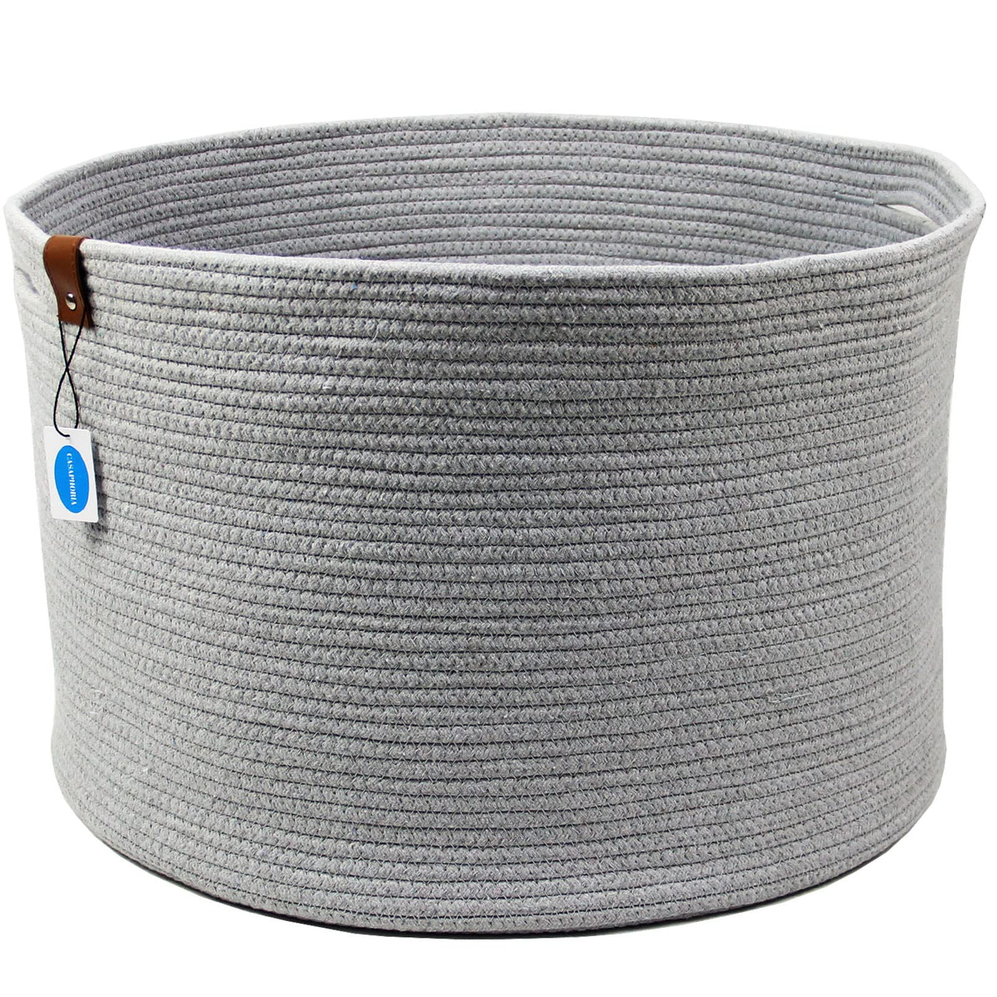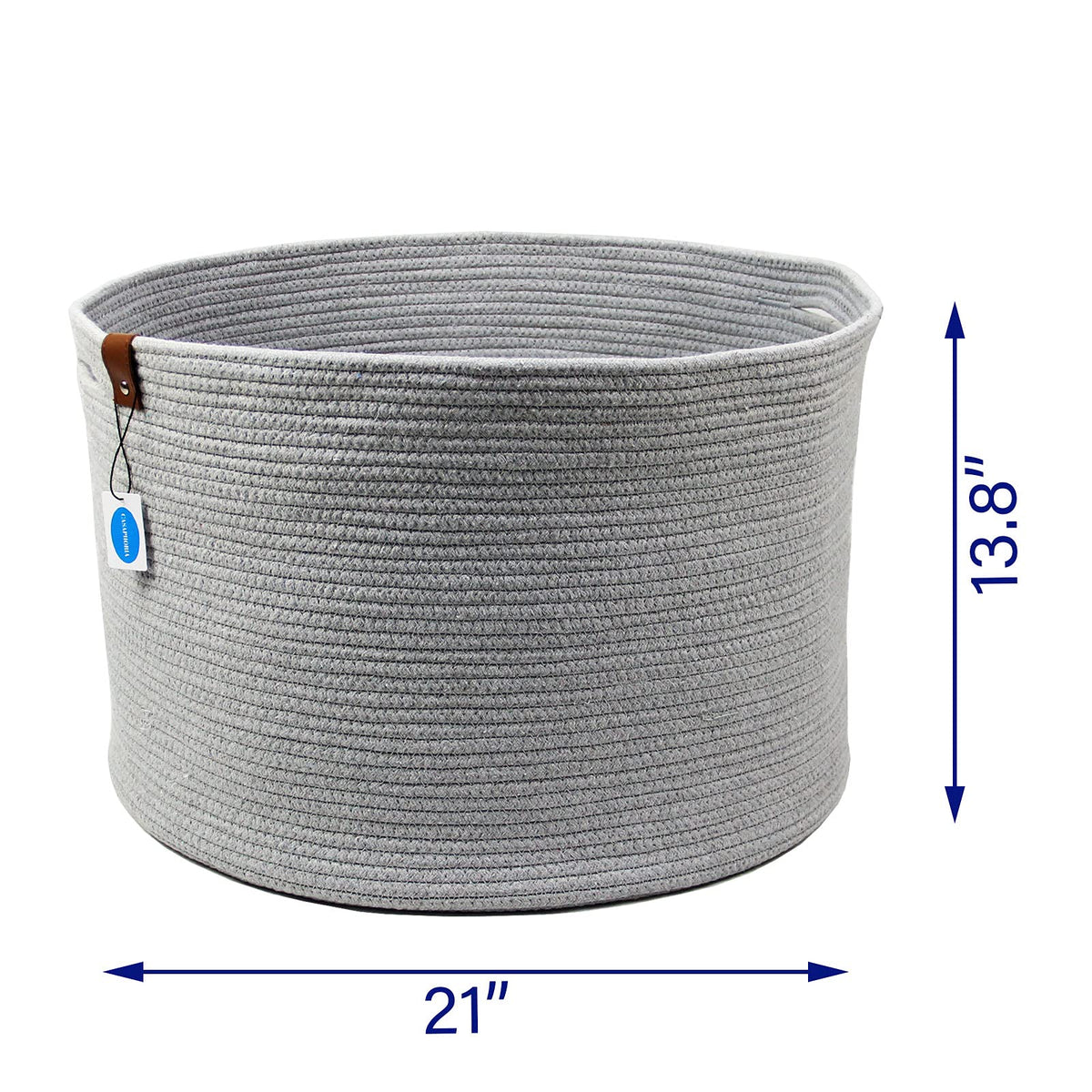 Q: What are the dimensions of the Casaphoria Cotton Rope Basket?A: The Casaphoria Cotton Rope Basket measures 21 inches in width, 21 inches in length, and 13.8 inches in height, making it an extra-large storage solution for various items.