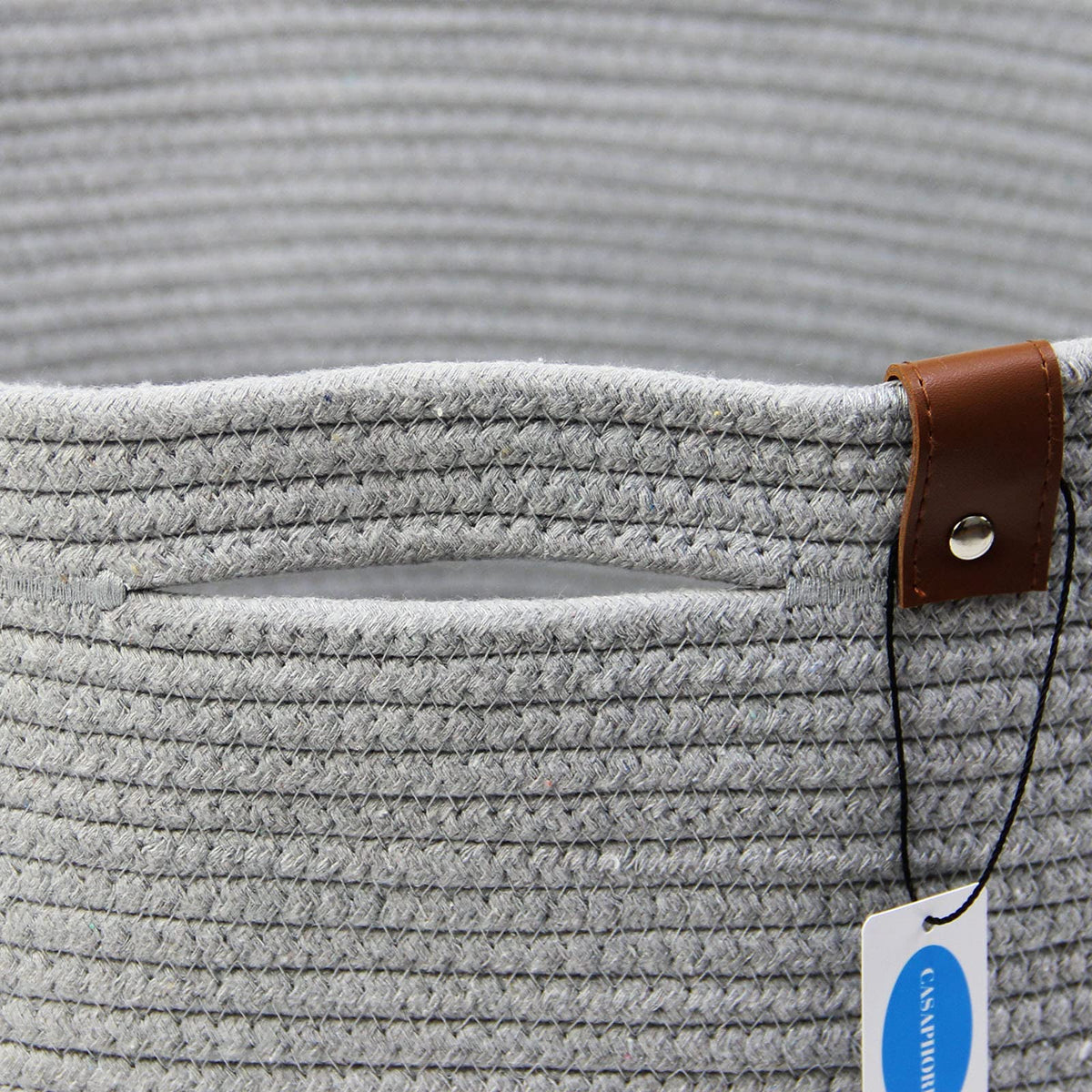 Q: What makes this basket suitable for home decor?A: The neutral grey color and soft cotton material of the basket allow it to blend seamlessly into any room decor. Its stylish design also makes it a unique decorative piece while serving a practical storage function.