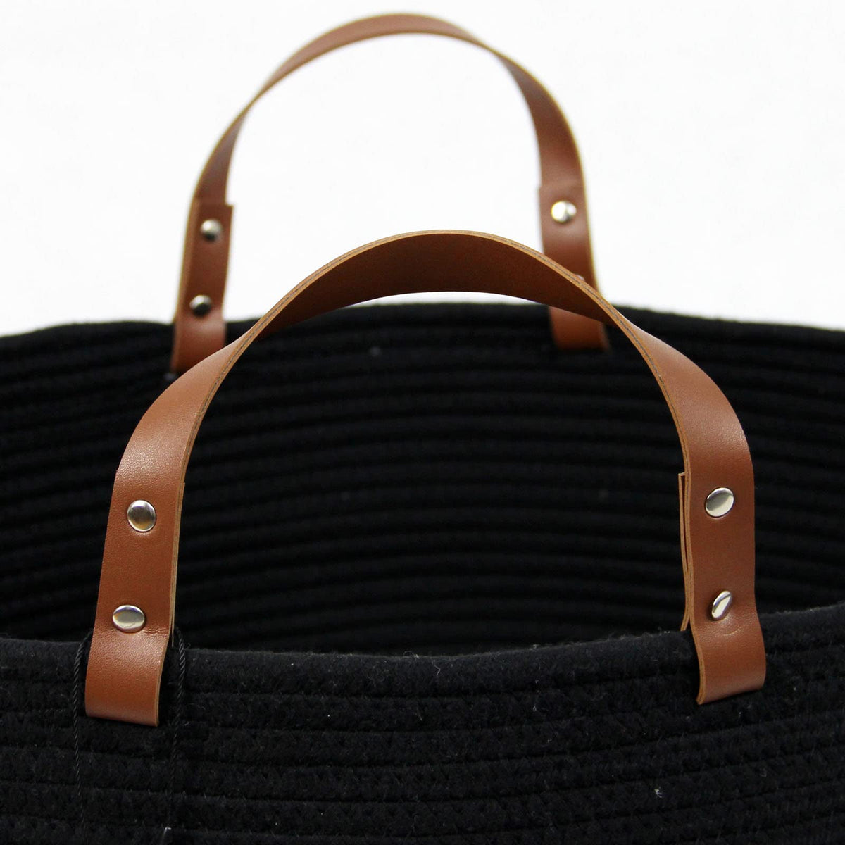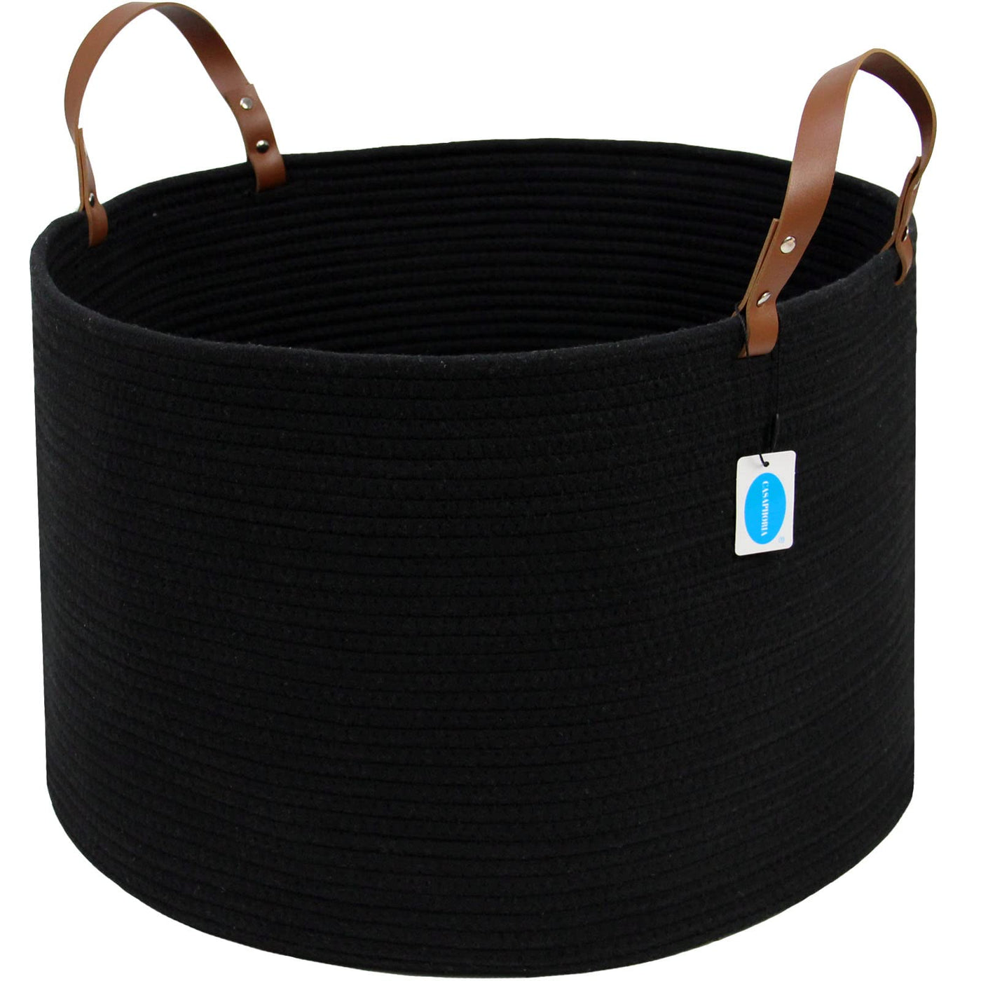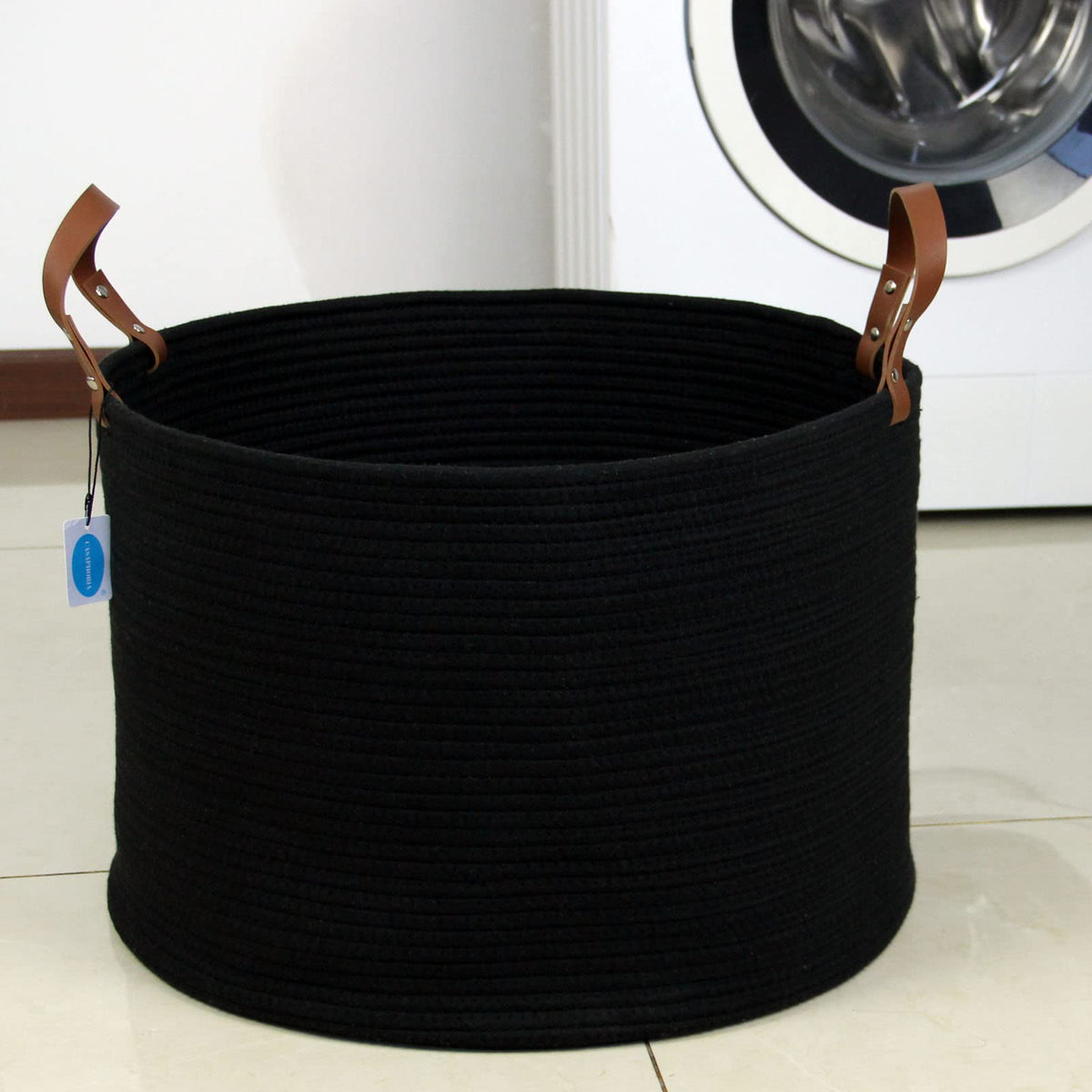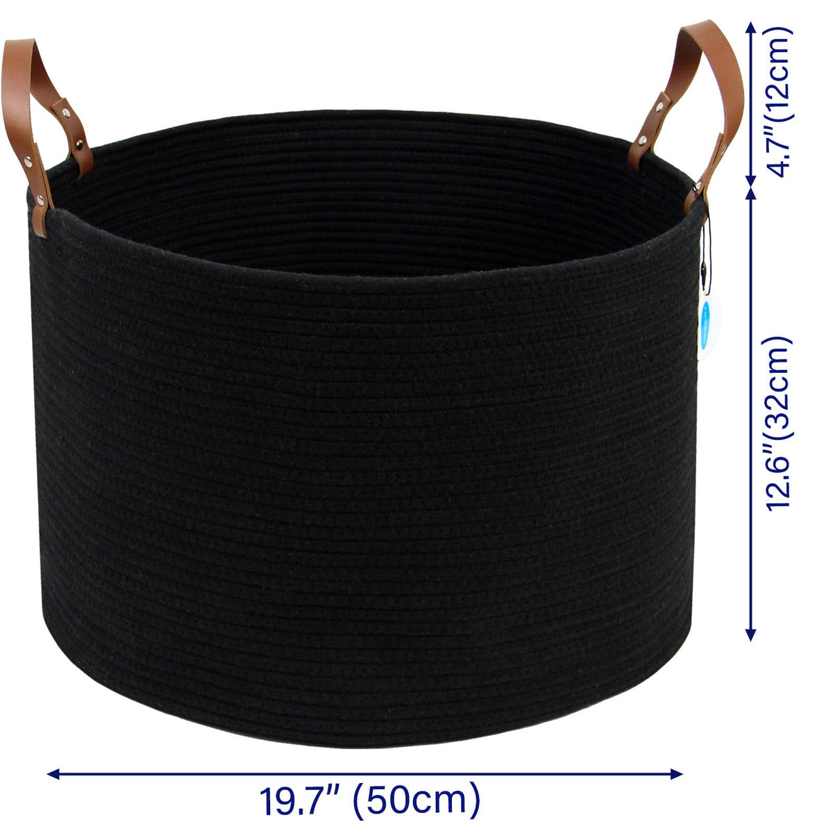 Q: Can this basket be used for laundry?A: Yes, this basket is perfect for laundry storage, as well as for organizing items like books, throw blankets, and pillows, thanks to its spacious design and durable leather handles.