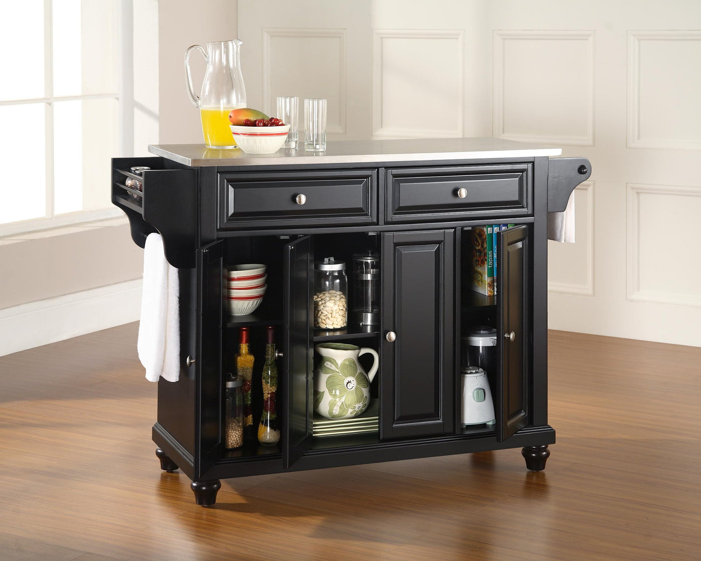 Crosley Furniture Cambridge Stainless Steel Top Rolling Kitchen Island Storage Cart, Spice Rack, Black