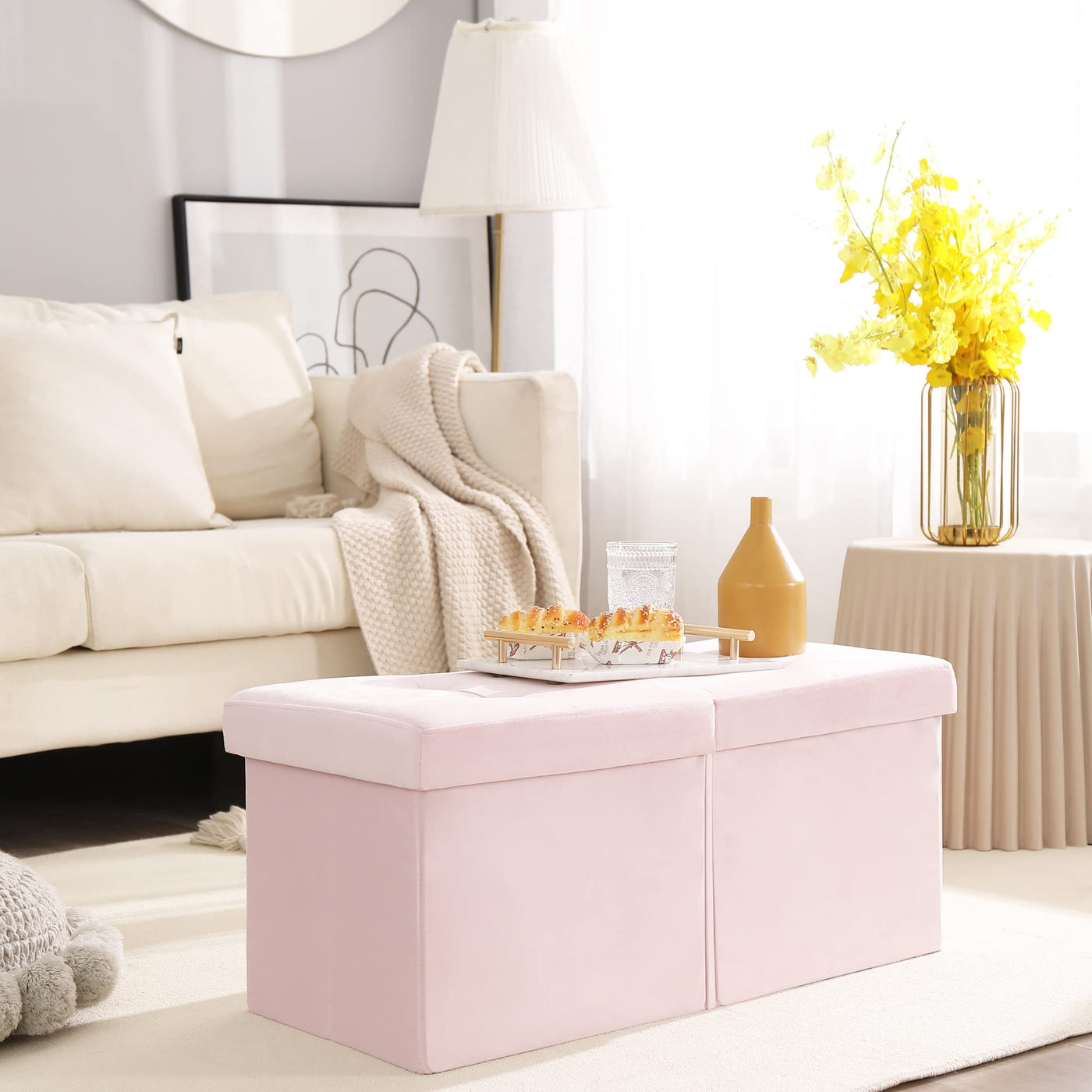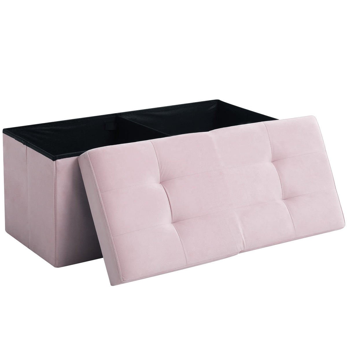 Cuyoca Storage Ottoman Bench Foldable Seat Footrest Shoe Bench End Of Bed Storage With Flipping Lid, 75L Storage Space, 30 Inches Velvet Pink