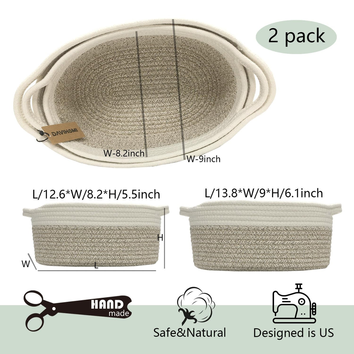 Davihomi 2-Piece Shelf Storage Basket With Handles|Cotton Rope Basket|Cat Dog Baskets|Closet Storage Basket For Laundry Room|Sto