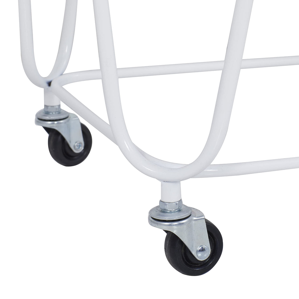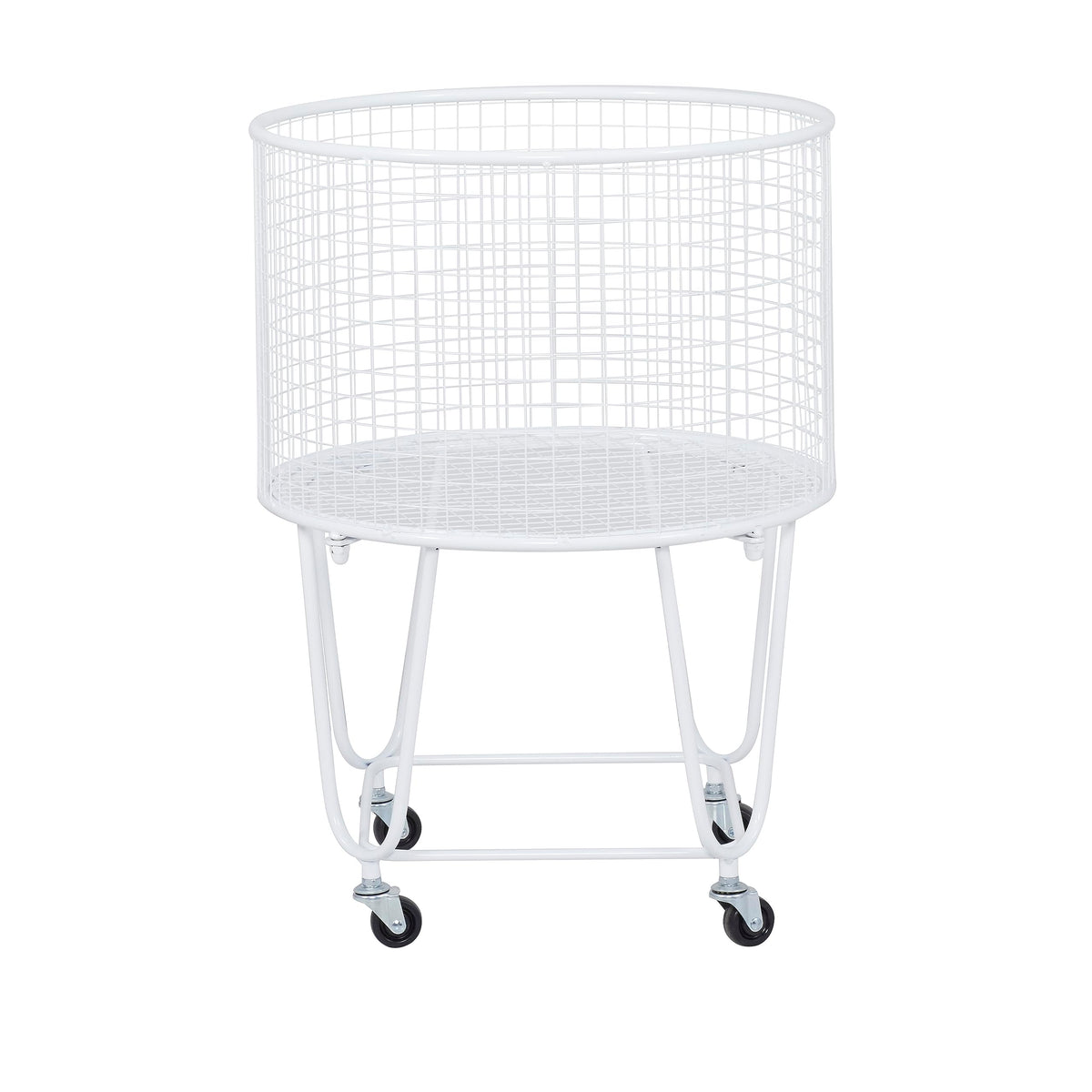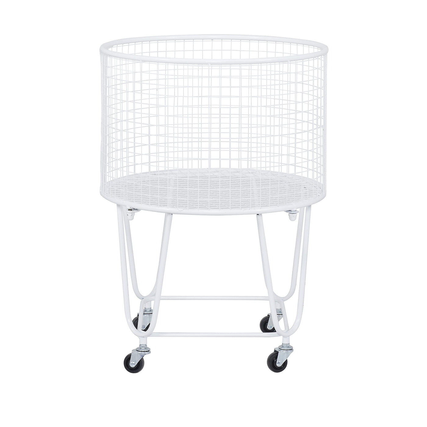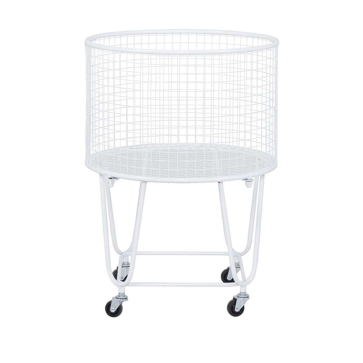 Create a calming, organized space with style. Filled with shoes, laundry, blankets and more, these storage carts are a stylish way to store your stuff. This industrial rolling cart is a multifunctional home piece that can serve as a laundry hamper, pillow and blanket basket, cart , or planter stand. This item ships in 1 carton. Suitable for indoor use only. This item ships fully assembled in one piece. Maximum weight limit is 20 lbs. This is a single white colored laundry cart. Industrial style.