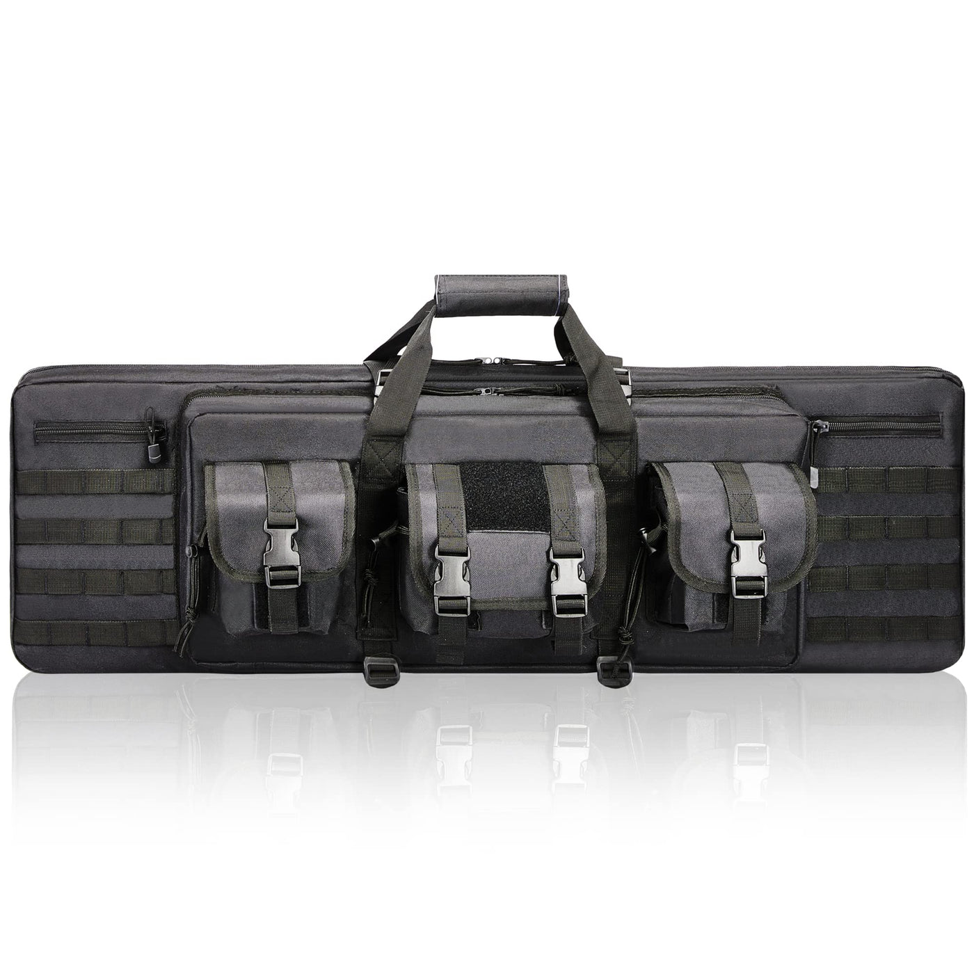 Dulce Dom Double Rifle Case Soft Padded Long Rifle Bagspecification:Brand: Dulce Dommaterial: 600D Oxford Fabriccolor: Blackfeatures: Large Space, Lockable Zipper, Hidable Shoulder Strap, Padded Divider, Molle Systemsuitable For: 2 Rifles, 2 Pistols, Goggles, Magazines, Ear And Eye Gear, Ammo And Other Accessories You May Needsize: 32 Inch, 36 Inch, 42 Inch, 48 Inch