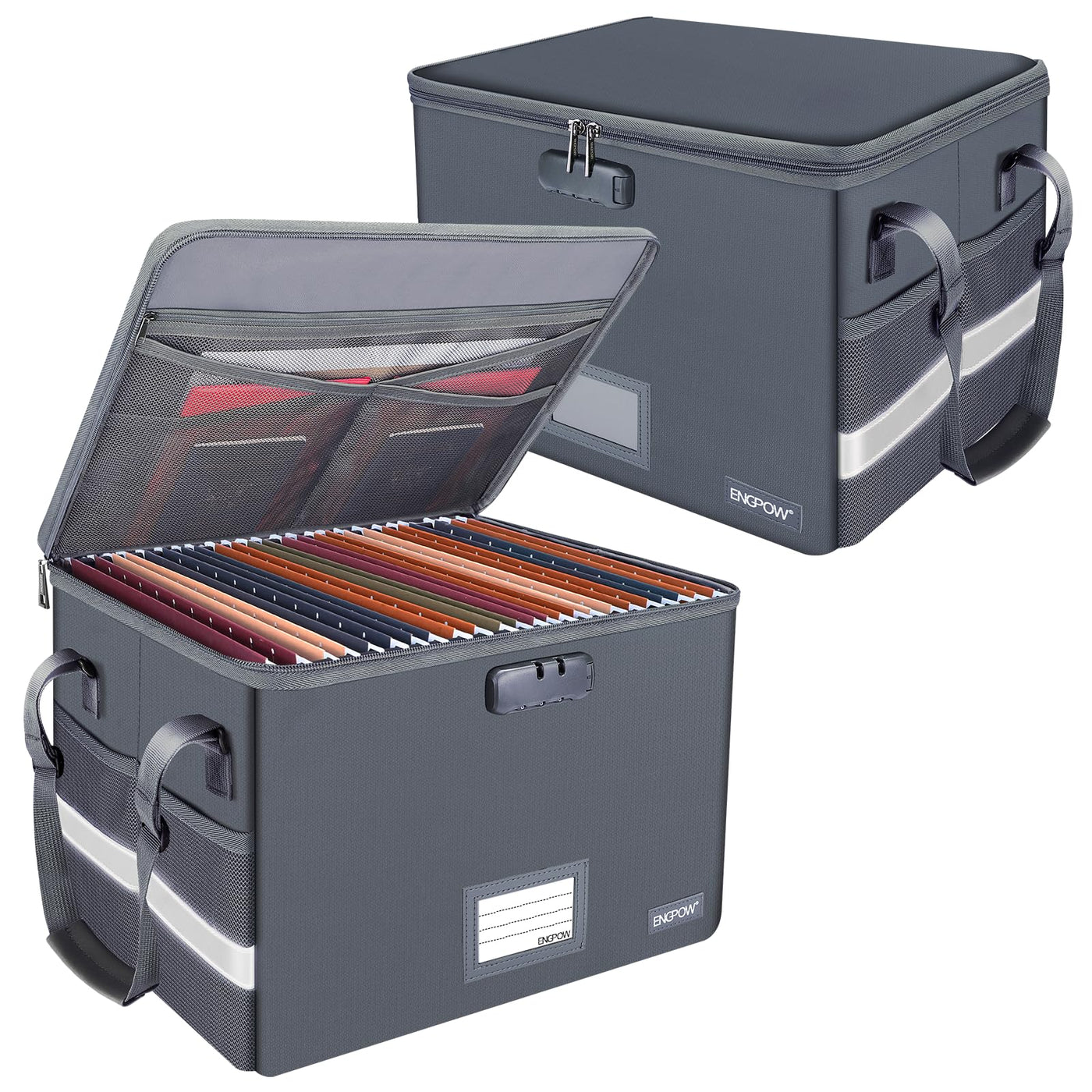 Engpow File Box With Lock,Fireproof Document Box With Pockets,Collapsible File Storage Organizer Box Filing Box With Handle,Portable Home Office Safe Box For Hanging Letter/Legal Folder,2 Pack(Gray)