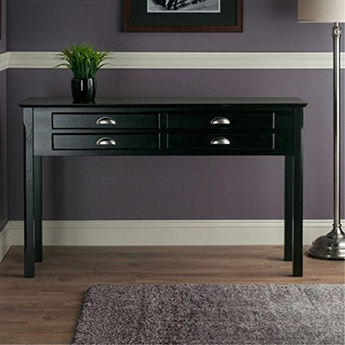 Ergode Wood Timber Console Table - Contemporary Design, Black Finish, 4 Storage Drawers, Entryway Furniture, Easy Assembly - 47.6' W x 15.7' D x 29.1' H