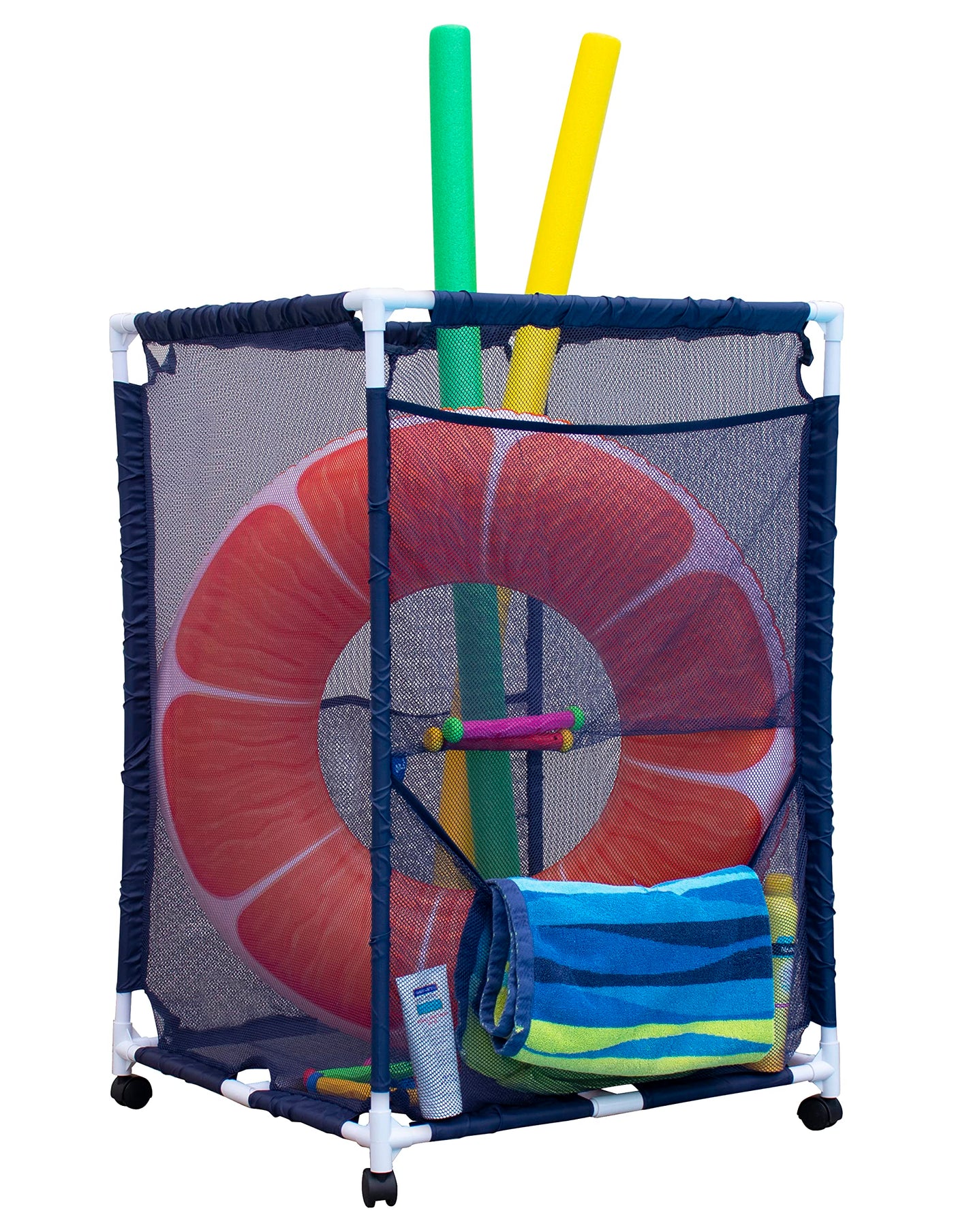Essentially Yours Rolling Pool Storage Organizer Bin, Medium, (25.4' W X 25.4' L X 40' H), Blue/White Style 417227