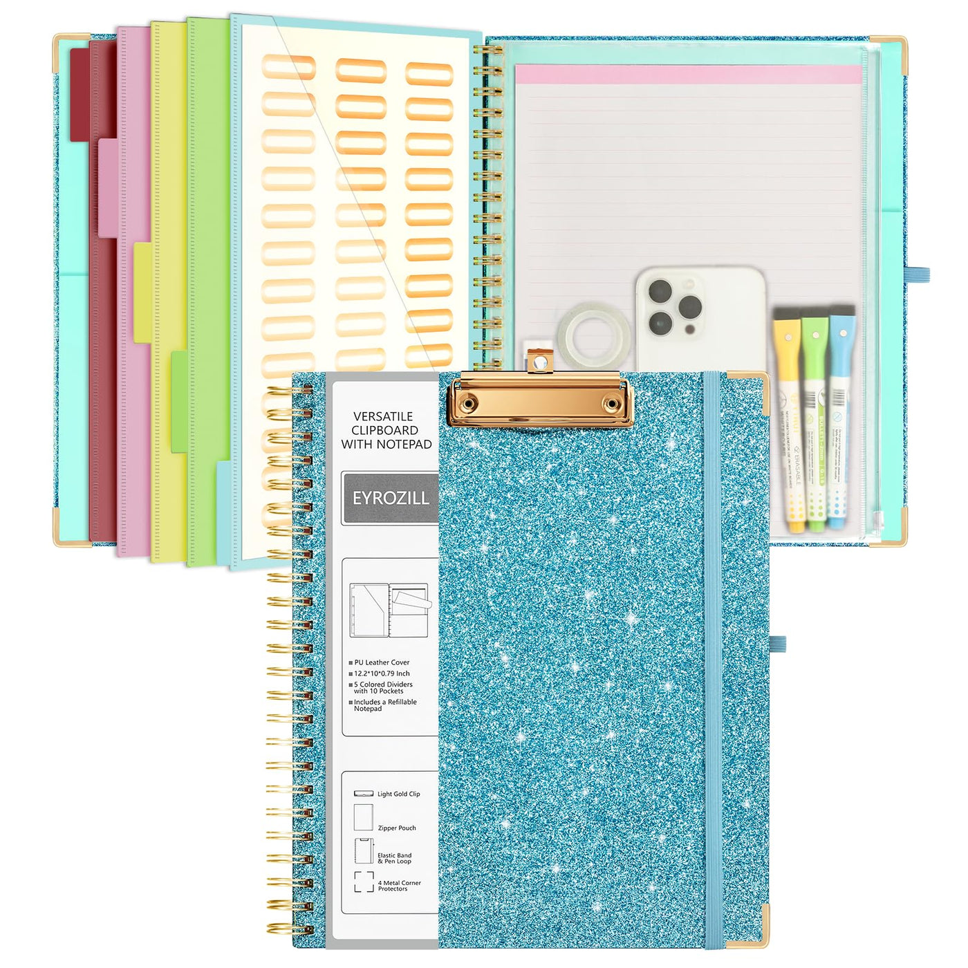 Eyrozill Clipboard Folio With Storage Pocket Refillable Lined Notepad Spiral Clipboards Blue