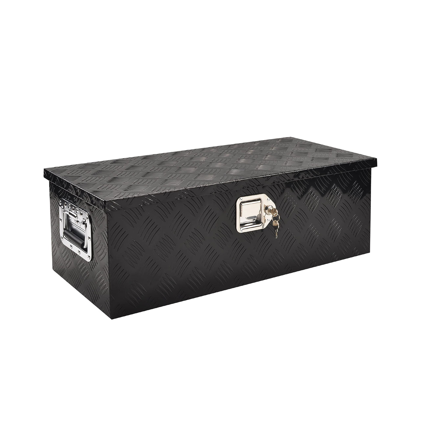 Description:Good Quality: This Aluminum Tool Box Is Characterized By High-Intensive &Amp; Corrosion-Resistant;Weather-Resistant Over - Lapping Lid Design, Preventing Any Undesired Leakage.Durable: High Quality And Durable Appearance Make The Trailer Tool Box Rarely Needed To Repair.Lightweight Box:Lightweight Of The Truck Toolbox Reduces Weight Gain On Tractors, Trailers, Or Trucks.Seal Ring Design: Protect The Internal Cleanliness And Prevent The Entry Of Rainwater And Other External Factors.Perfect Storage Solution: The Tool Box For Trailer Provides Storage Space For Your Truck/Trailer/Garage/Domestic Usefeatures:Made Of Premium 1.3Mm Aluminum In Chrome Finish In Solid Constructionfeatures With 1 Built-In Lock With 2 Keys For Safe And Secure Storageample Built Design With Spacious Storage To Save Spaceproper Size To Store As Family Storage Trucks, Tool Boxes, Cofferscomes With 2 Durable Side Handles For Easy Portableweather-Resistant Over-Lapping Lid Design, Preventing Any Undesired Leakage5 Bar Design Ensured The Storage Chest With Maximum Durability And Sturdinessspecifications:Material: Aluminumdimension: 30 X 13 X 10 (Lxwxh)Aluminum Thickness: 0.05Color: Blackpacking Including:1 X 30 ' ' Tool Box2Pcs X Keys