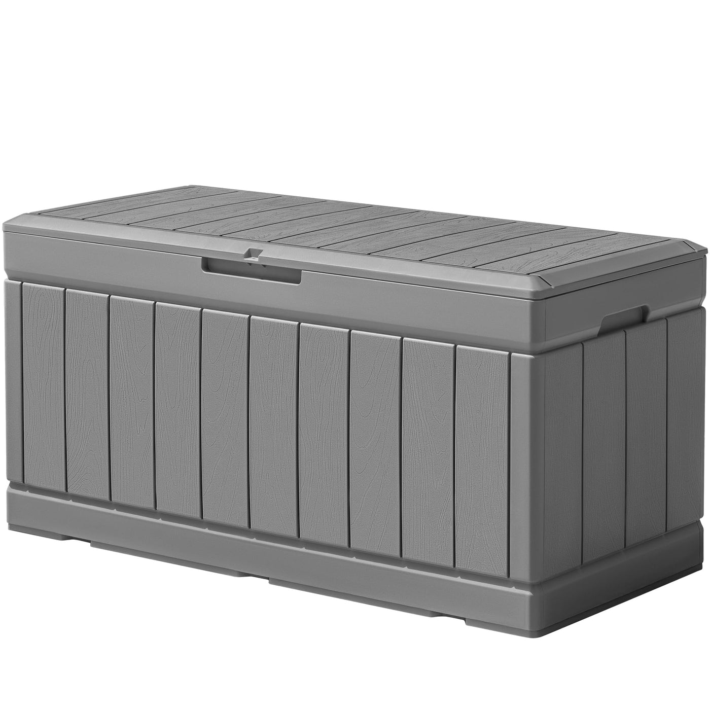 Flamaker Outdoor Storage Box 85 Gallon Resin Waterproof Deck Box With Wood Texture Large Storage Bin For Patio Cushions, (Grey)