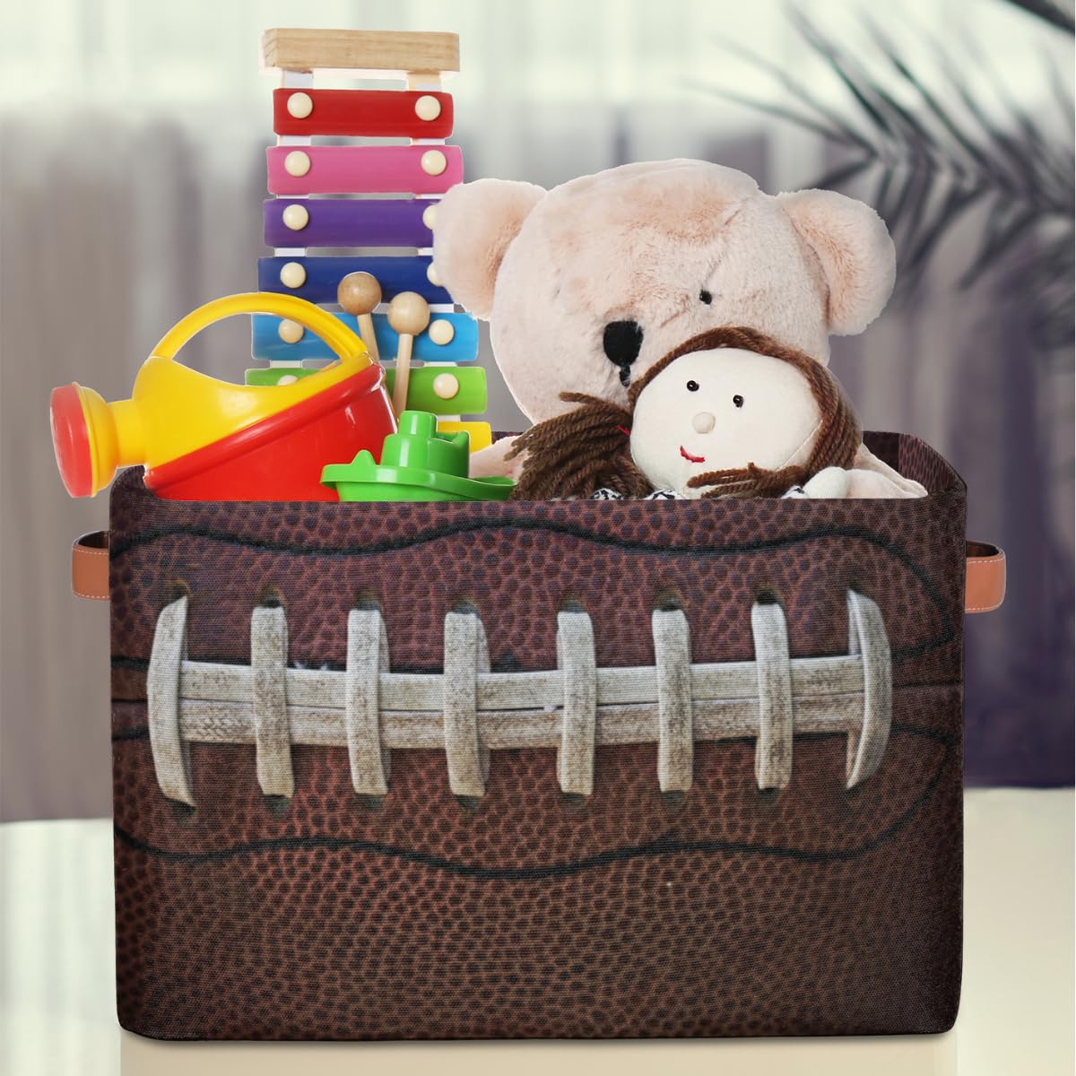 Q: Can this storage basket be used for toys in a nursery?A: Absolutely! The Football Storage Bin Basket is ideal for storing children's toys in a nursery, as well as other items like baby supplies, making it a versatile storage solution.