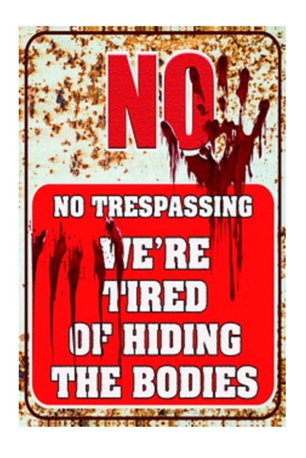 Funny No Trespassing Sign, Metal Warning Tin Signs, We Are Tired Of Hiding The Bodies, Yard Sign Garage Farm Garden Wall Decor S
