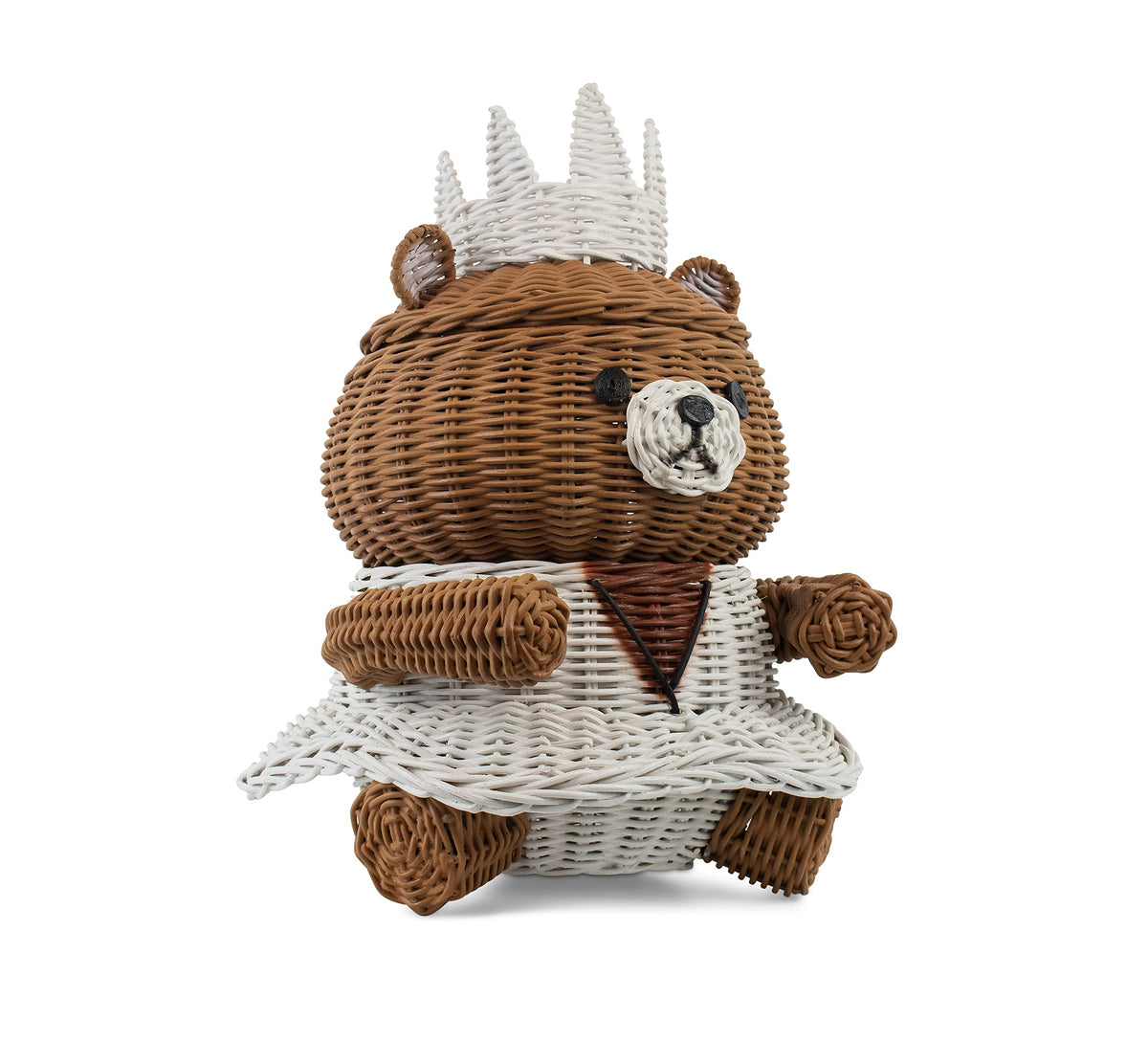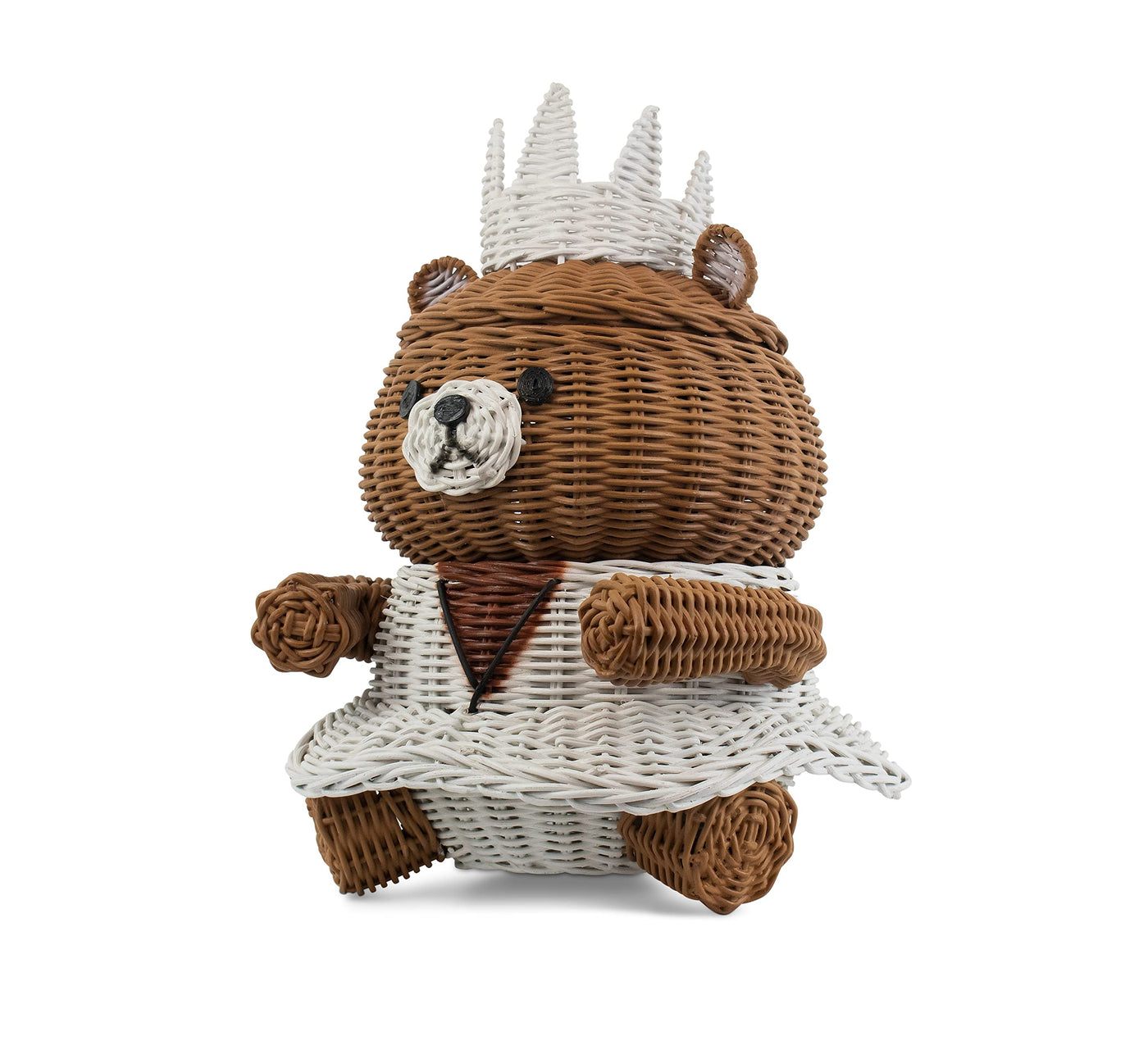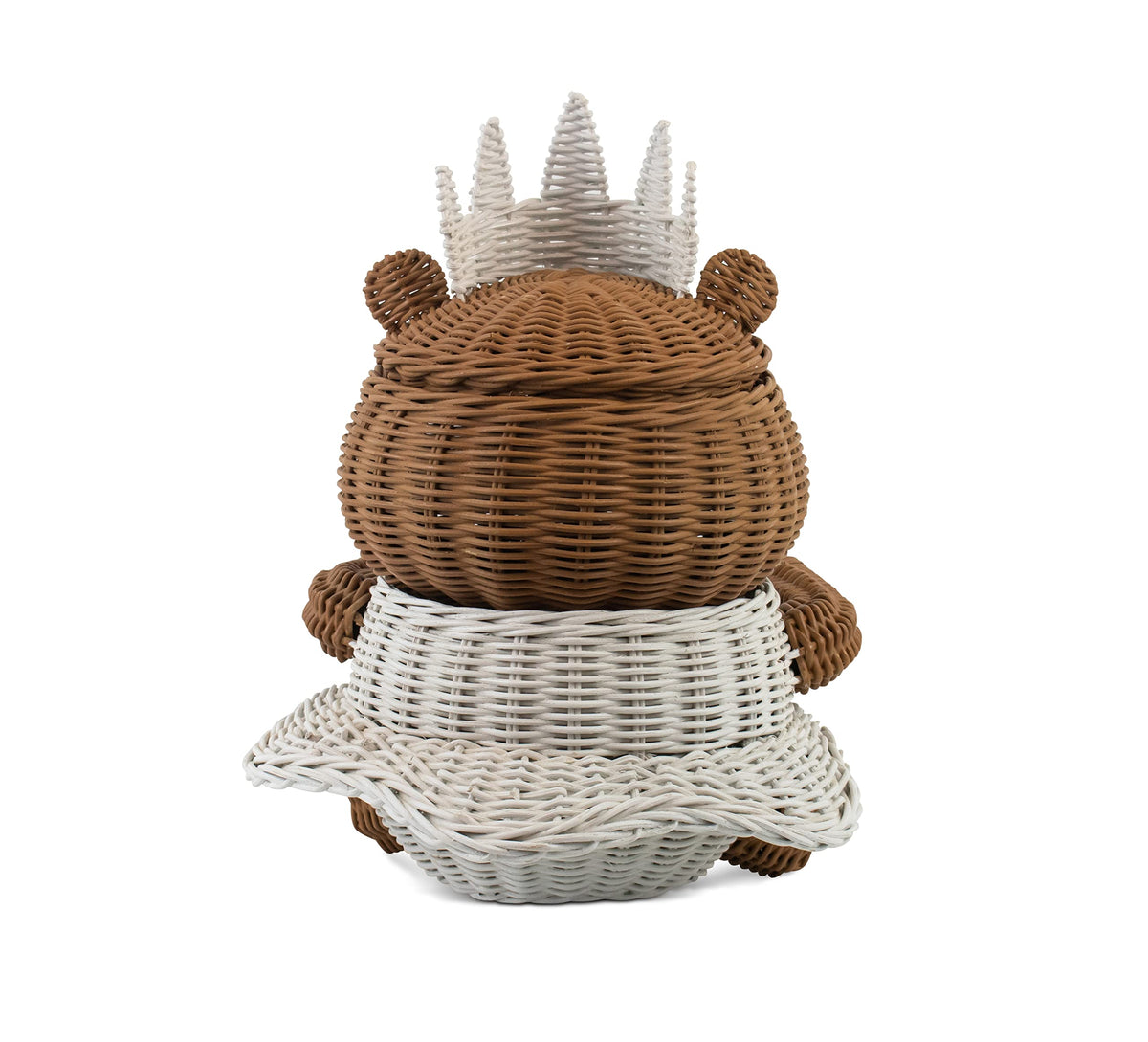 Behold Bear Royalty! Crowned With A Tiara And Donning A White Gown, This Regal Bear Basket Takes The Shape Of A Royal Empress From The Fairy Tale Land Of Make-Believe. Woven By Hand From Rattan, The Princess Bear Storage Basket Features A Hollowed Core, Cute Button Eyes And A Top Lid For Easy Use.