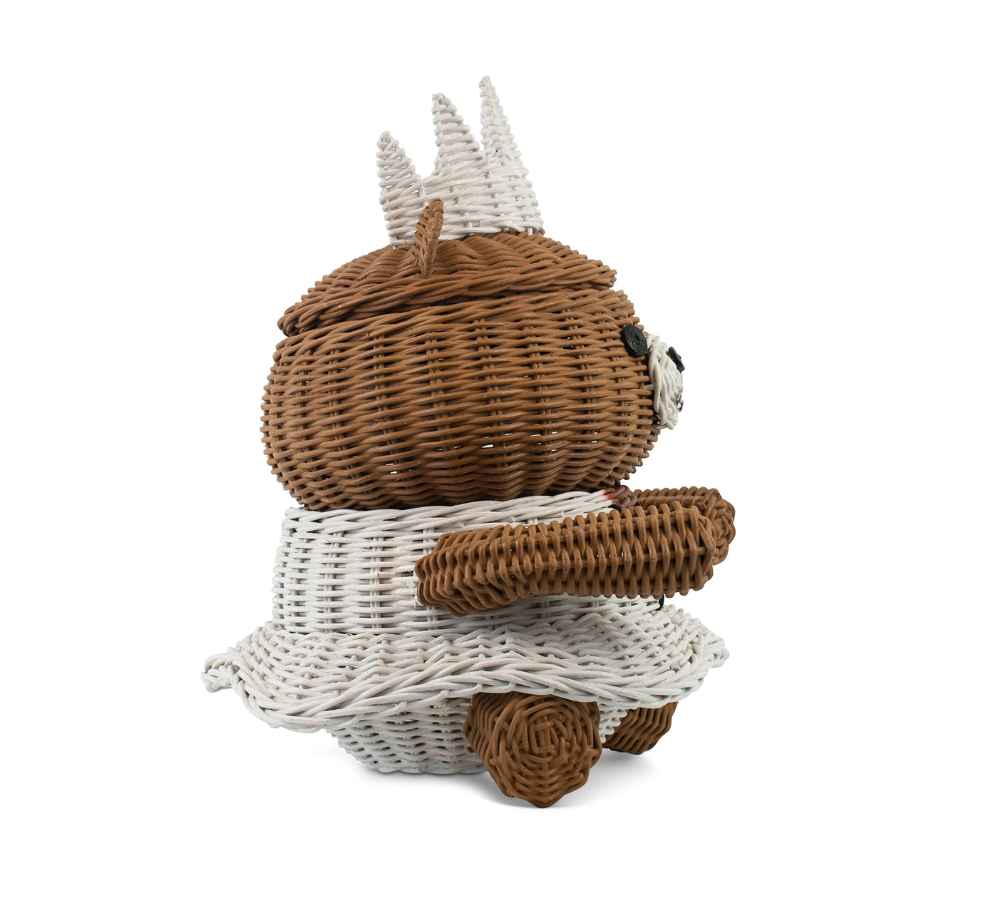 Q: What materials is the bear storage basket made from?A: This decorative bin is hand woven from natural rattan, ensuring durability while adding a charming touch to your home decor.