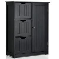 Giantex Bathroom Floor Cabinet, Wooden Storage Cabinet With 1 Door & 3 Drawer, Free Standing Entryway Cupboard, Space Saver Cabinet