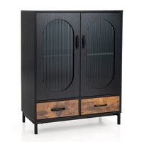 Giantex Buffet Cabinet With 2 Drawers, Wooden Sideboard, Standing 2-Tier Cupboard W/Tempered Glass Doors, Industrial Multifunctional Storage Cabinet For Kitchen Living Room Coffee Bar (Black & Brown)