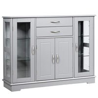 Giantex Sideboard Buffet Server Storage Cabinet W/ 2 Drawers, 3 Cabinets And Glass Doors For Kitchen Dining Room Furniture Cupboard Console Table (Gray)