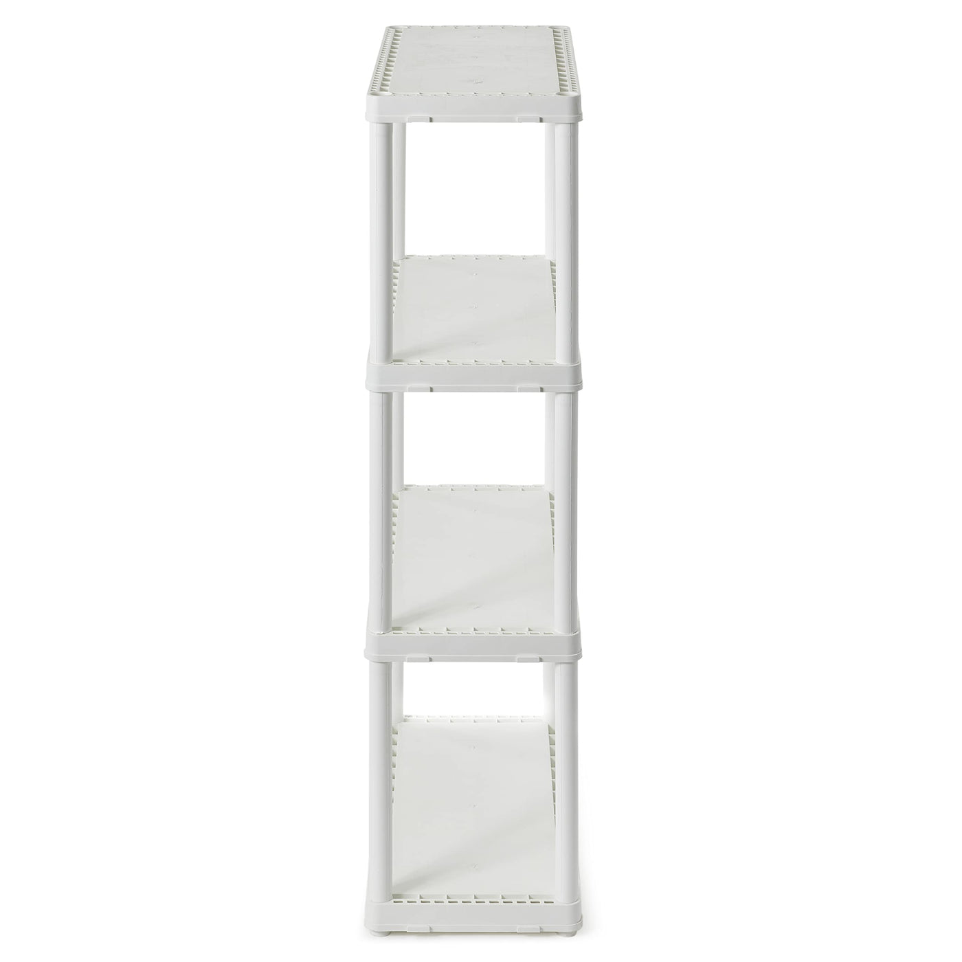 Light-Duty 4-Tier Shelving: This Organization And Storage Stand Provides A Versatile Solution Ideal For Your Kitchen Pantry, Garage, Laundry Room, Or Any Room In Your Home That Needs Organizing|Max-It Connectible Design: Interconnect This Closet Organizer With Multiple Units Side By Side For Added Storage Space; Dimensions (L X W X H): 12 X 24 X 48 Inches|Solid Shelves: The Shelving Unit Features 4 Solid Fixed-Height Plastic Shelves That Can Hold Up To 55 Pounds Per Shelf, Up To 220 Pounds Total; Great For Laundry Room Organization, As A Bathroom Organizer, Or Even As A Display Shelf|Long-Lasting Use: Constructed From Durable Plastic, This Utility Rack Resists Rusting, Denting, And Peeling; Garage Shelving Is Easy To Assemble With No Tools Required|Create A Gracious Home: At Gracious Living, We’Re Committed To Making Innovative, High-Quality, And Affordable Products To Help People Live More Organized And Gracious Lives In Homes They Love