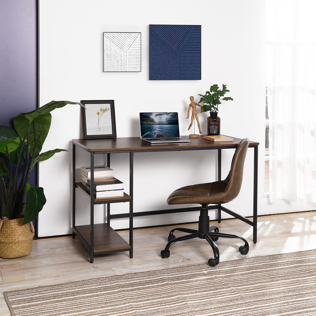 Equip your ordinary workstation to a modern home workstation with this minimalist yet functional, Modern Geo Black and Walnut Computer Table With Storage Shelves. It features the savvy colors of walnut tabletop and black solid metal frame. This study desk is carefully crafted with a high-quality MDF board material with PVC finish for a smooth water-resistant tabletop finish and a scratch-resistant powder-coated metal frame that is built to last. The two multifunctional storage shelves are to help you organize your specific needs. This work desk has a compact size yet offers enough storage space to help you accommodate all of your computer hardware in a limited place. This ergonomic design computer table is perfect for your study or work from home solution for smaller places or your modern design style. 29.5†X 35.4†X 18.9â€